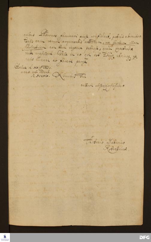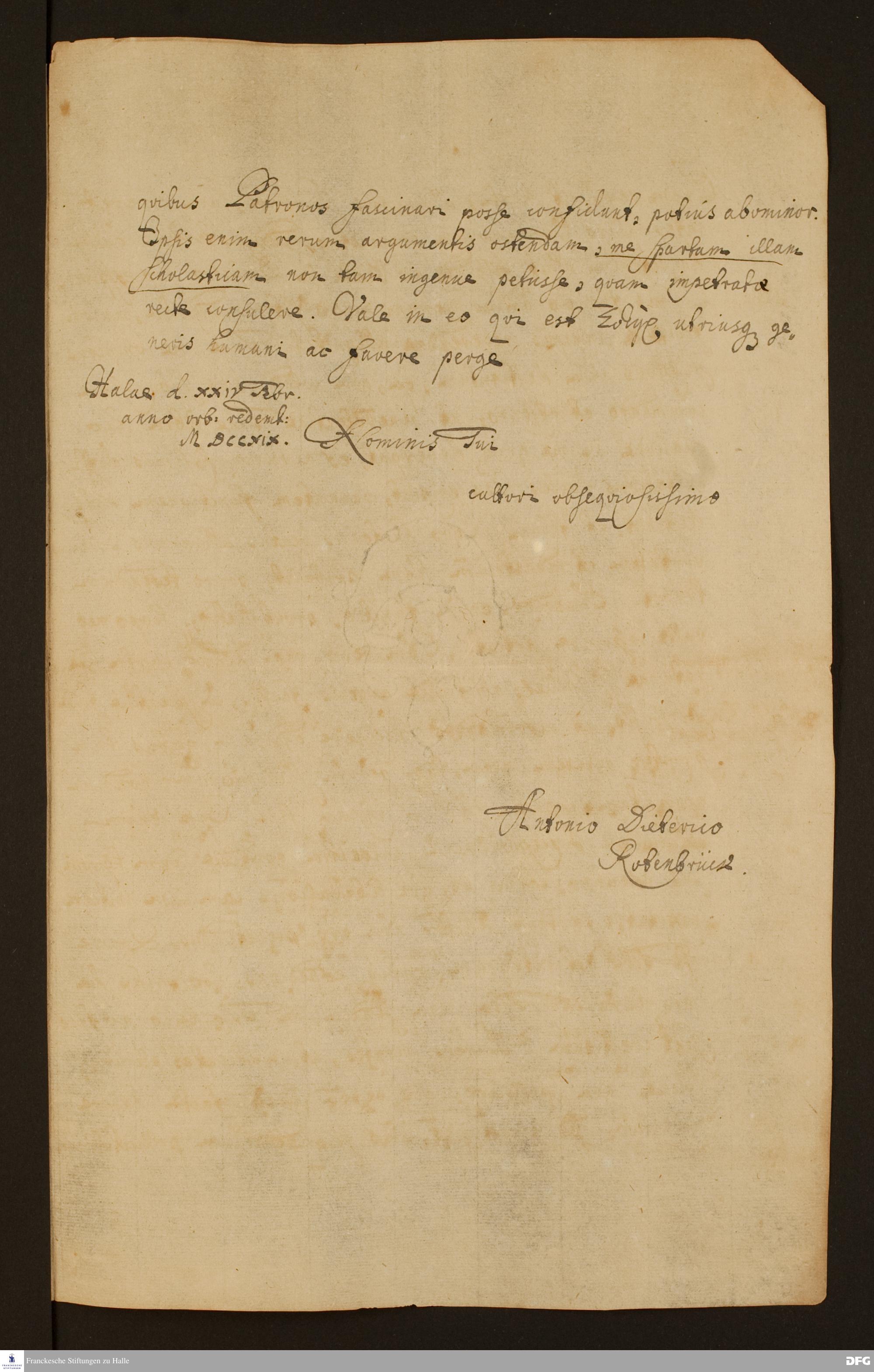 Brief von Anton Dietrich Rotenbrück an August Hermann Francke.