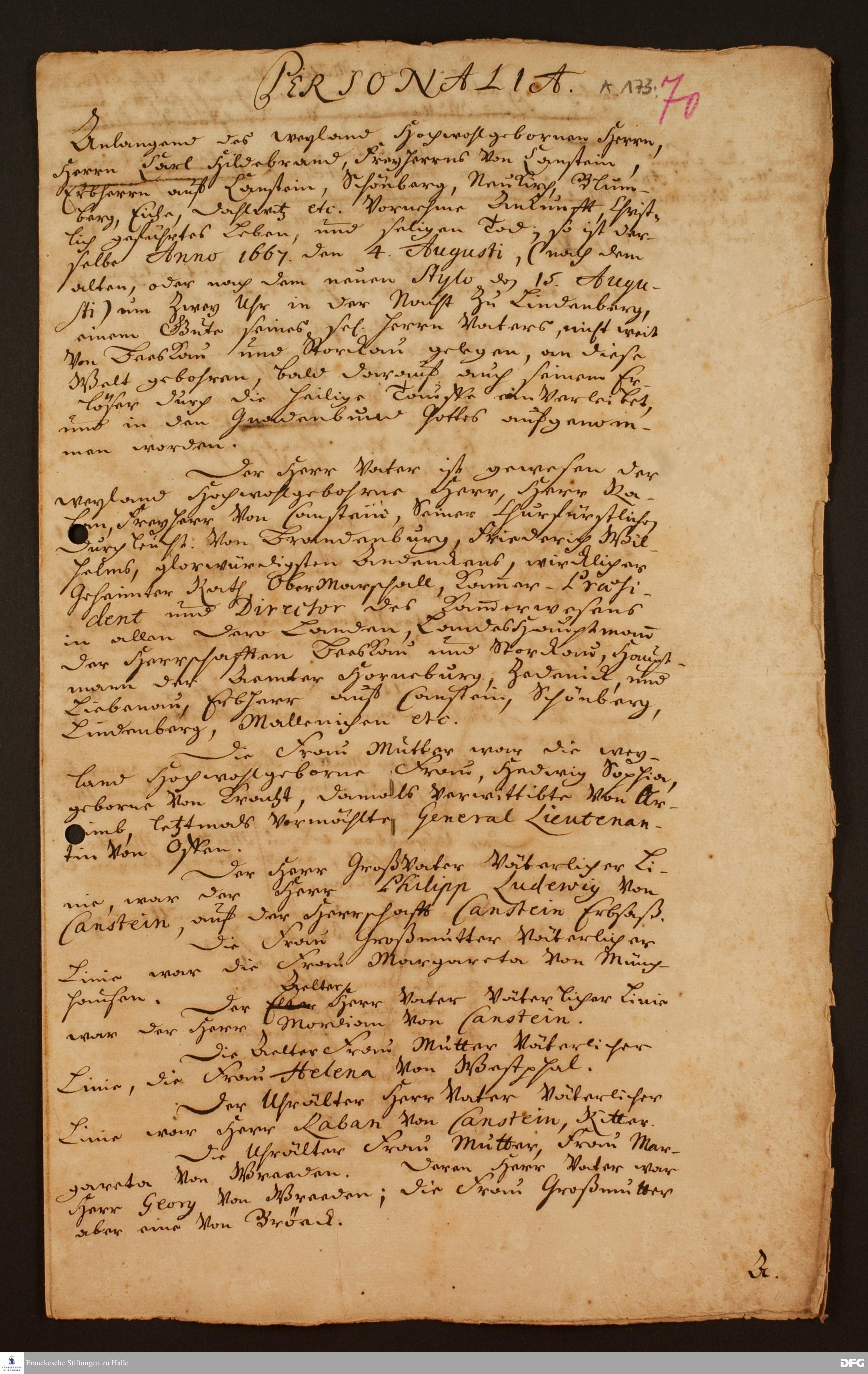 Ahnenreihe von Carl Hildebrandt v. Canstein, verfasst von [Unbekannt].