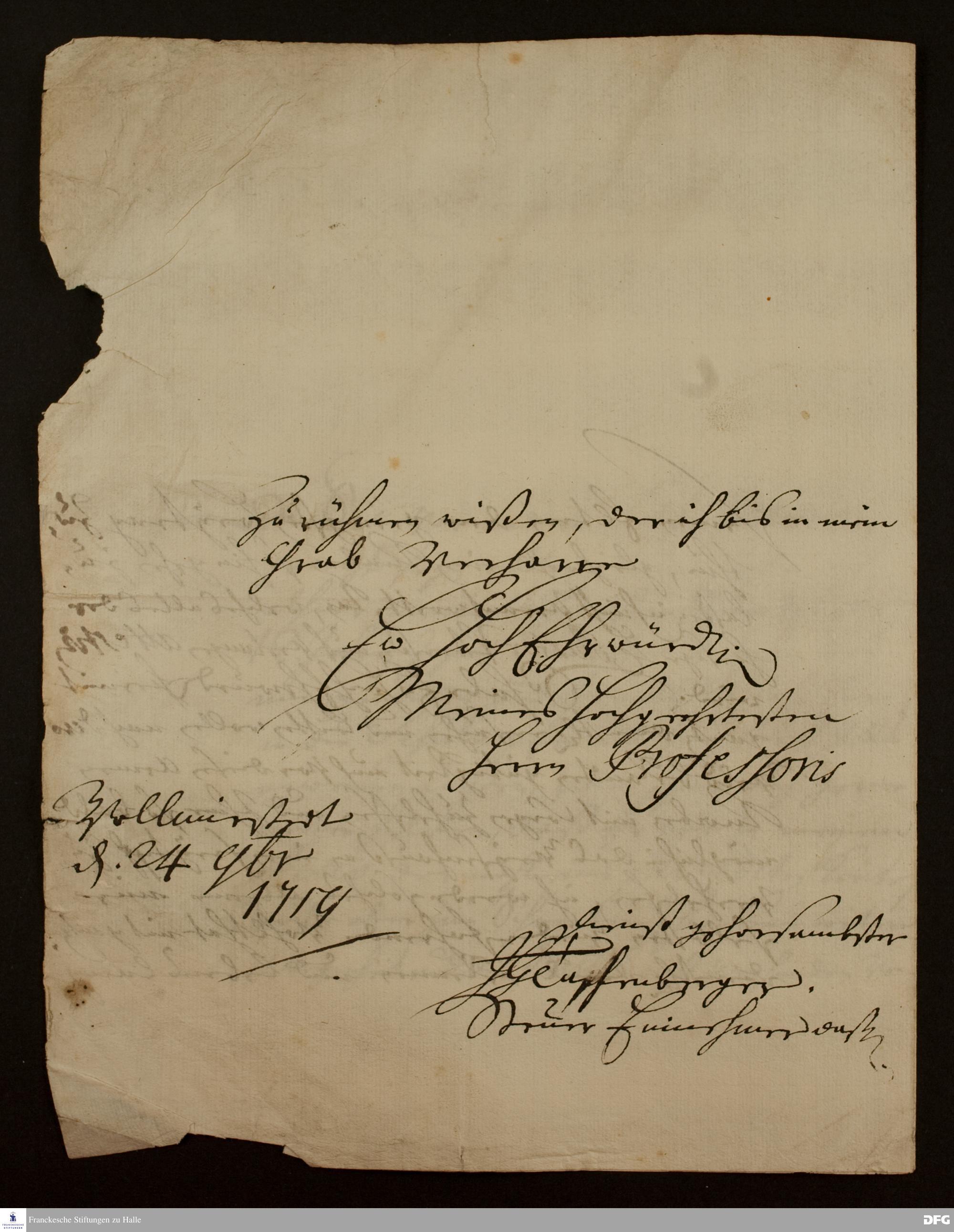 Brief von J. Glussenberger an August Hermann Francke.