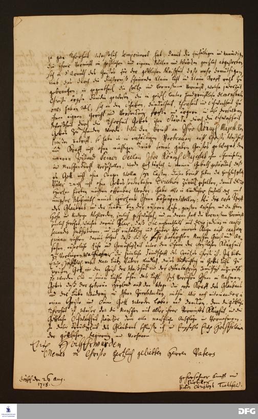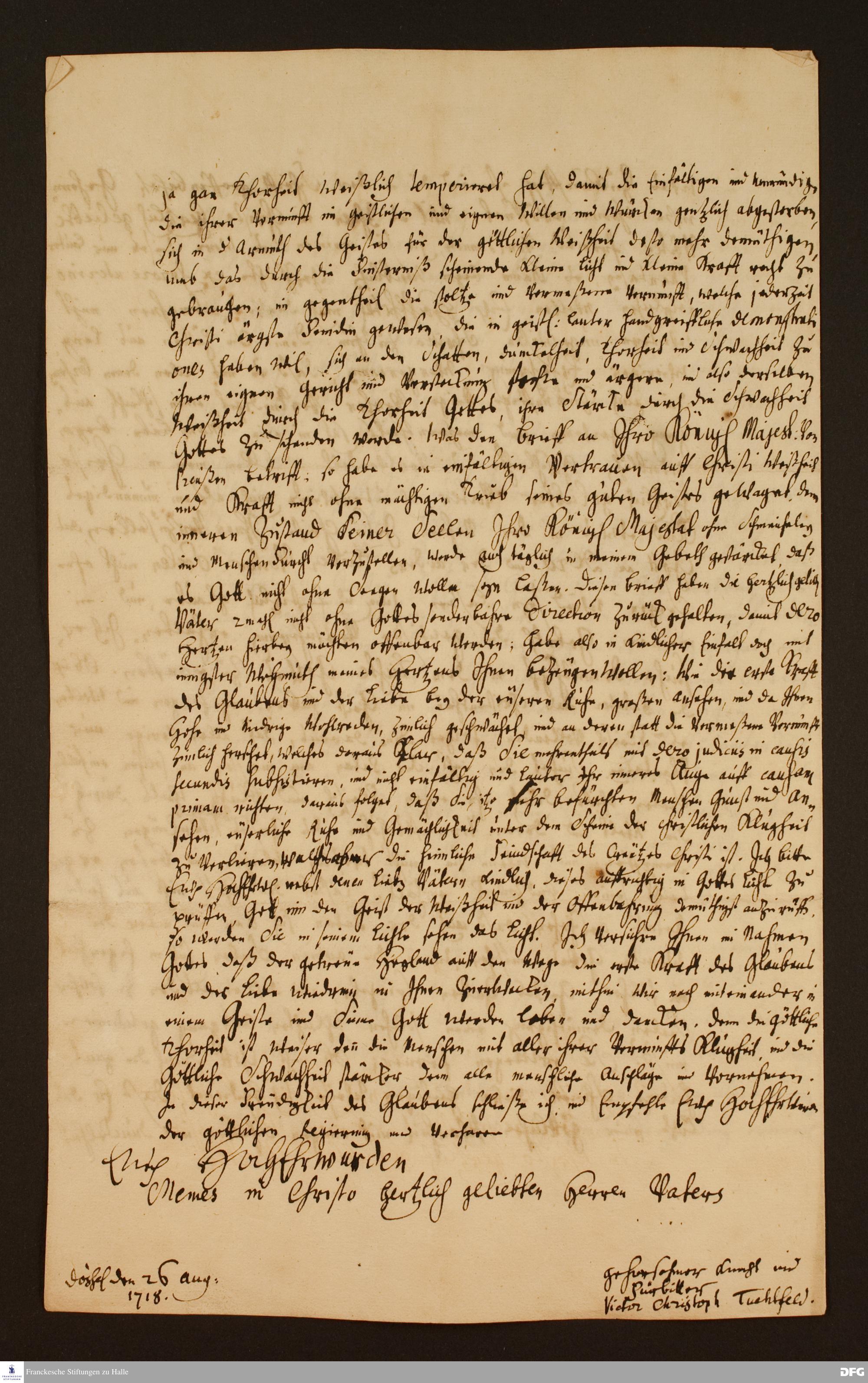 Brief von Viktor Christoph Tuchtfeld an August Hermann Francke.