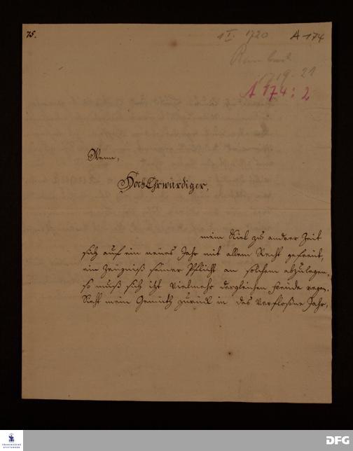 Brief von Johann Jakob Rambach an August Hermann Francke.
