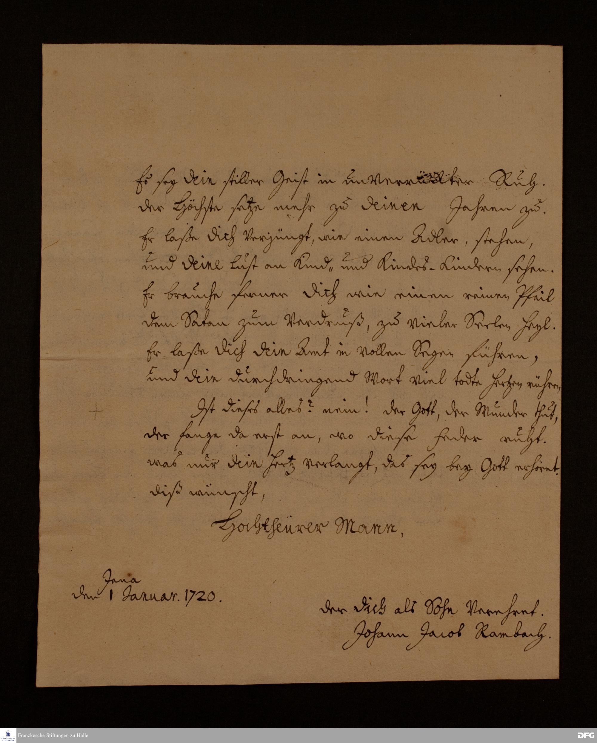Brief von Johann Jakob Rambach an August Hermann Francke.