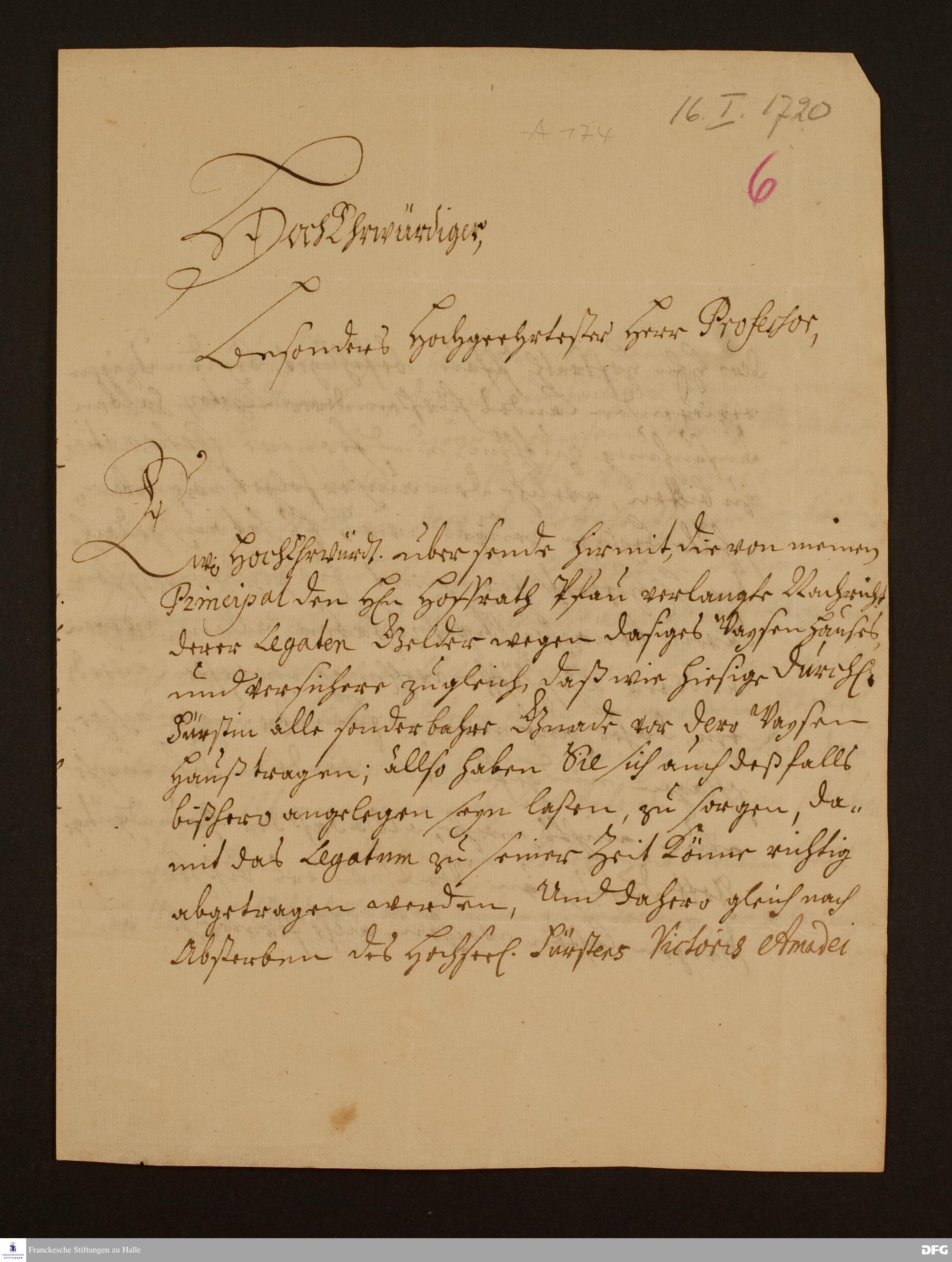 Brief von Johann Friedrich Rost an August Hermann Francke.