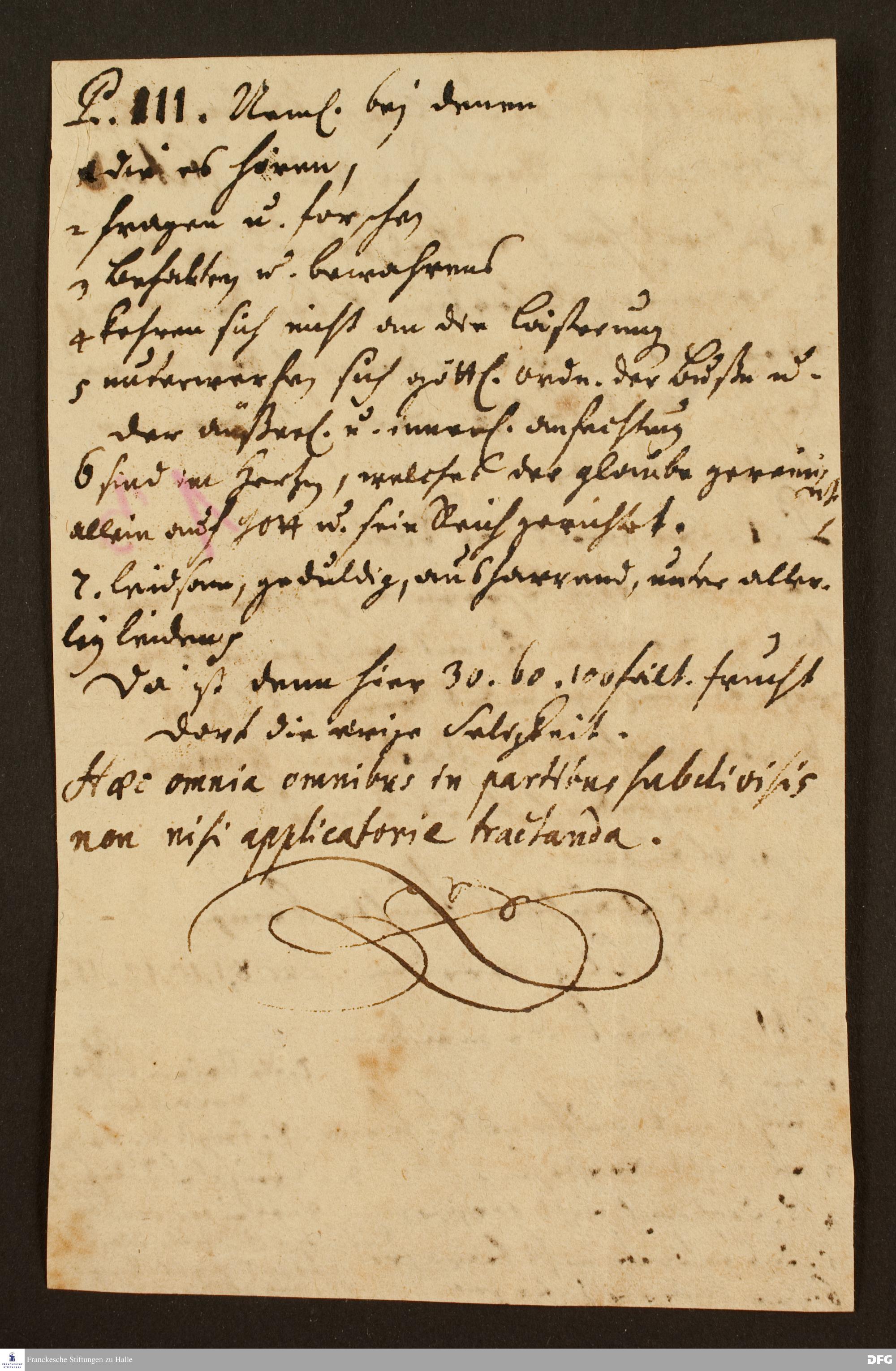 Disposition der Predigt von August Hermann Francke über Lk 8,4ff. am 04.02.1720.