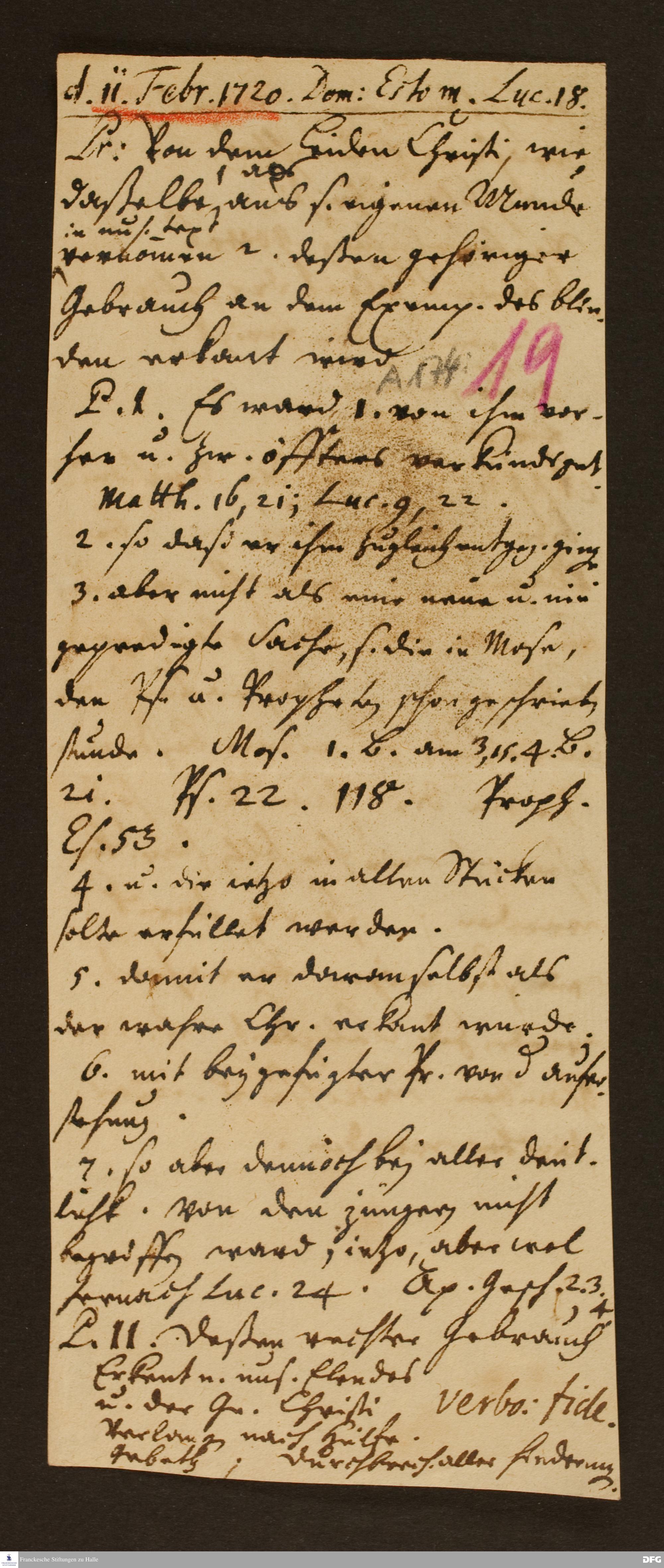 Disposition der Predigt von August Hermann Francke über Lk 18 am 11.02.1720.