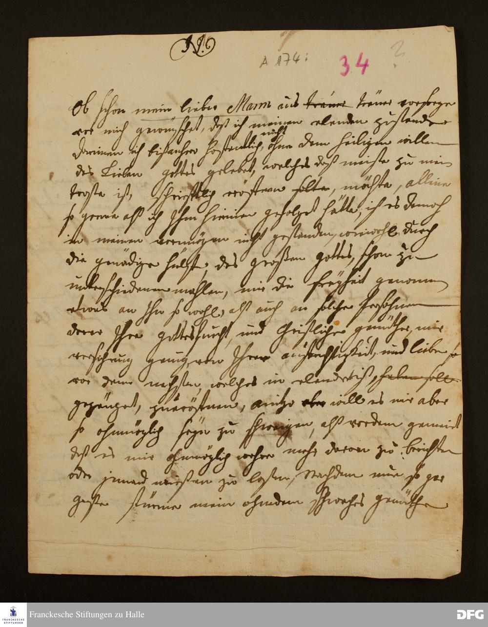 Teil eines Briefs von [Unbekannt] an [August Hermann Francke ?].