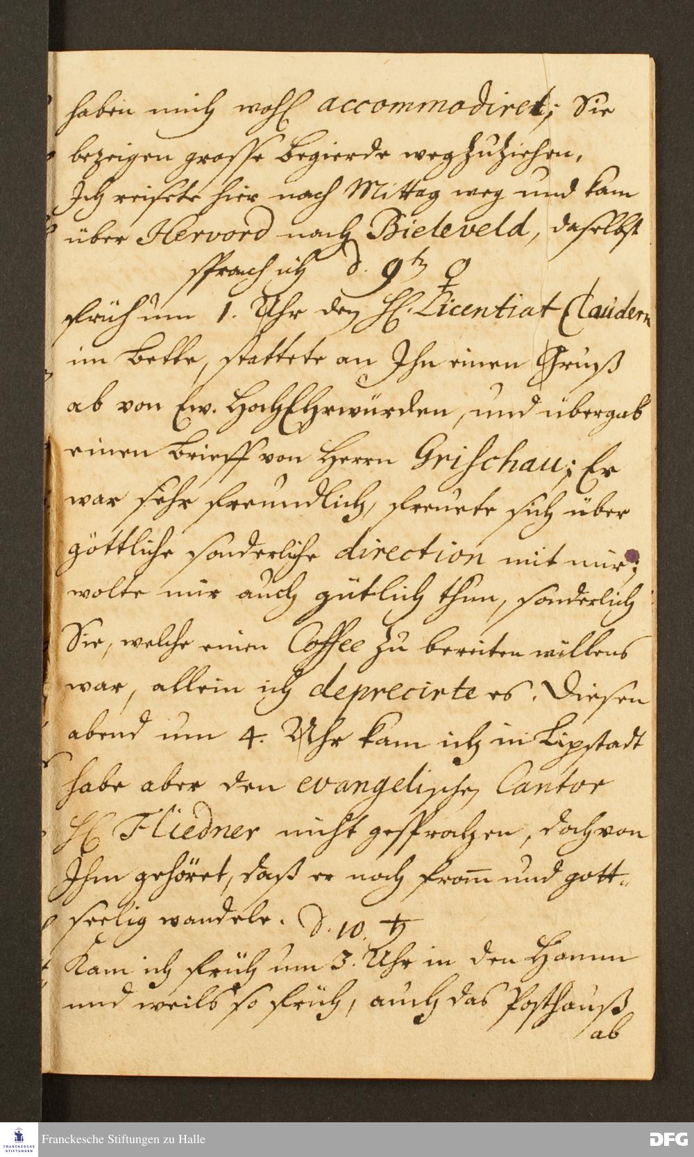Reisetagebuch von Daniel Christian Francke an August Hermann Francke.