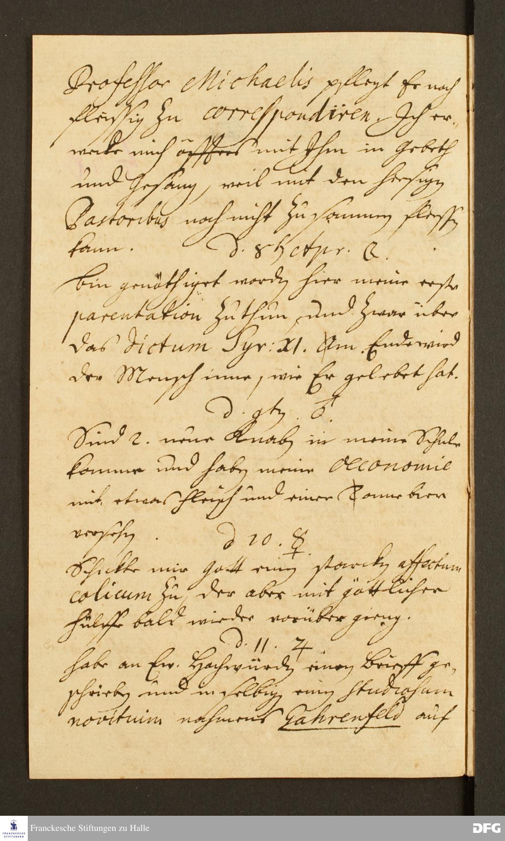 Reisetagebuch von Daniel Christian Francke an August Hermann Francke.