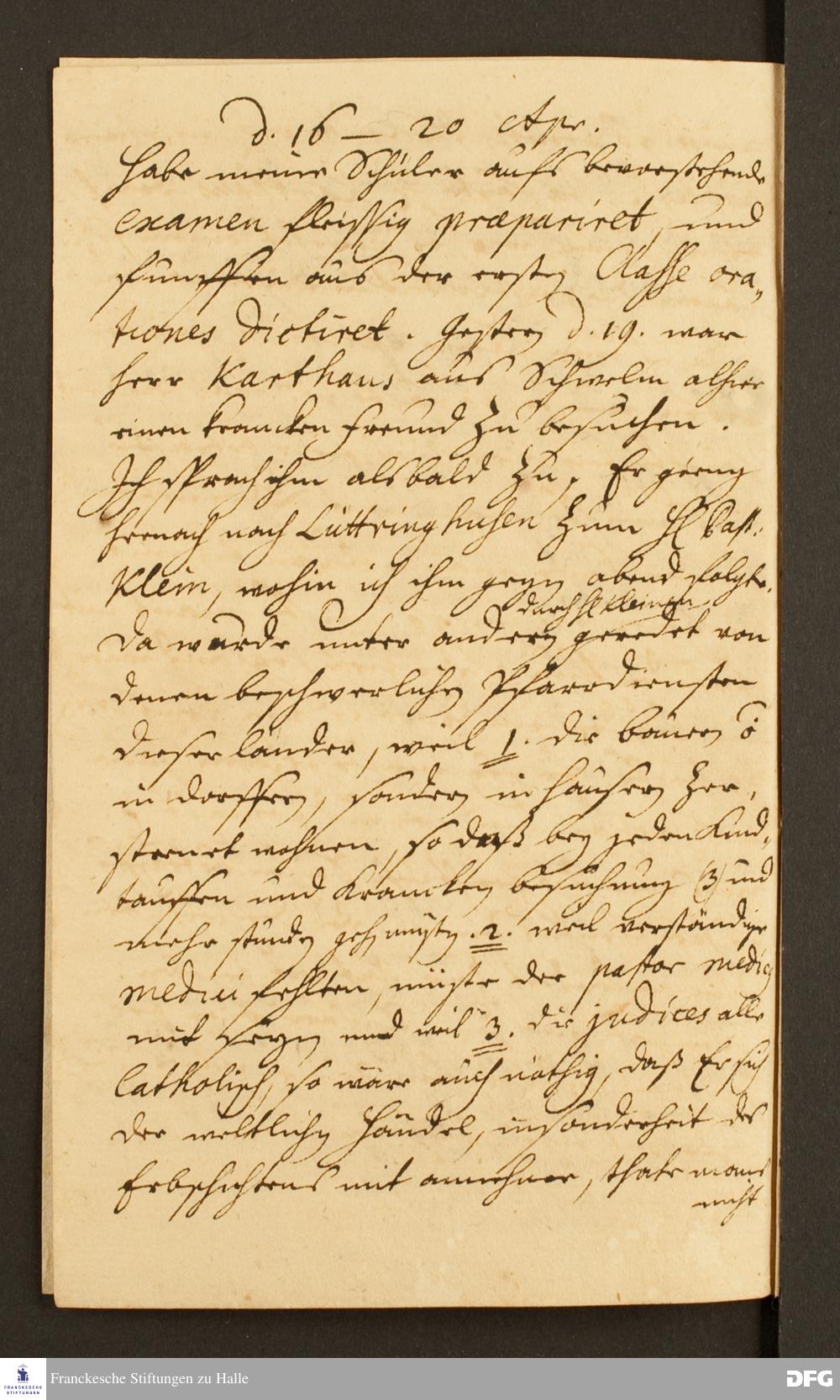 Reisetagebuch von Daniel Christian Francke an August Hermann Francke.