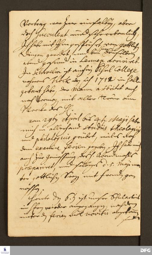 Reisetagebuch von Daniel Christian Francke an August Hermann Francke.