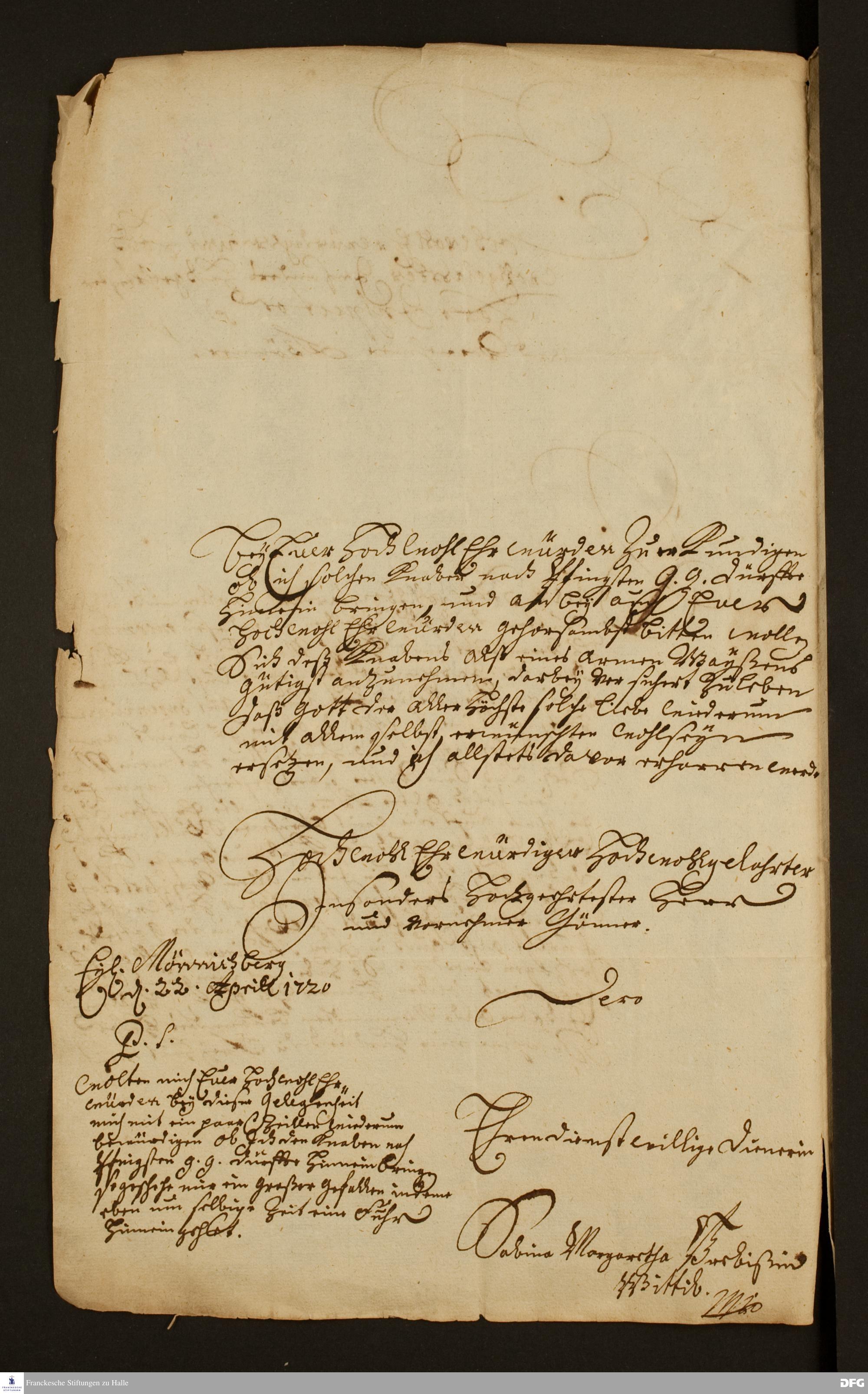 Brief von Sabine Margarethe Prebiss an August Hermann Francke.