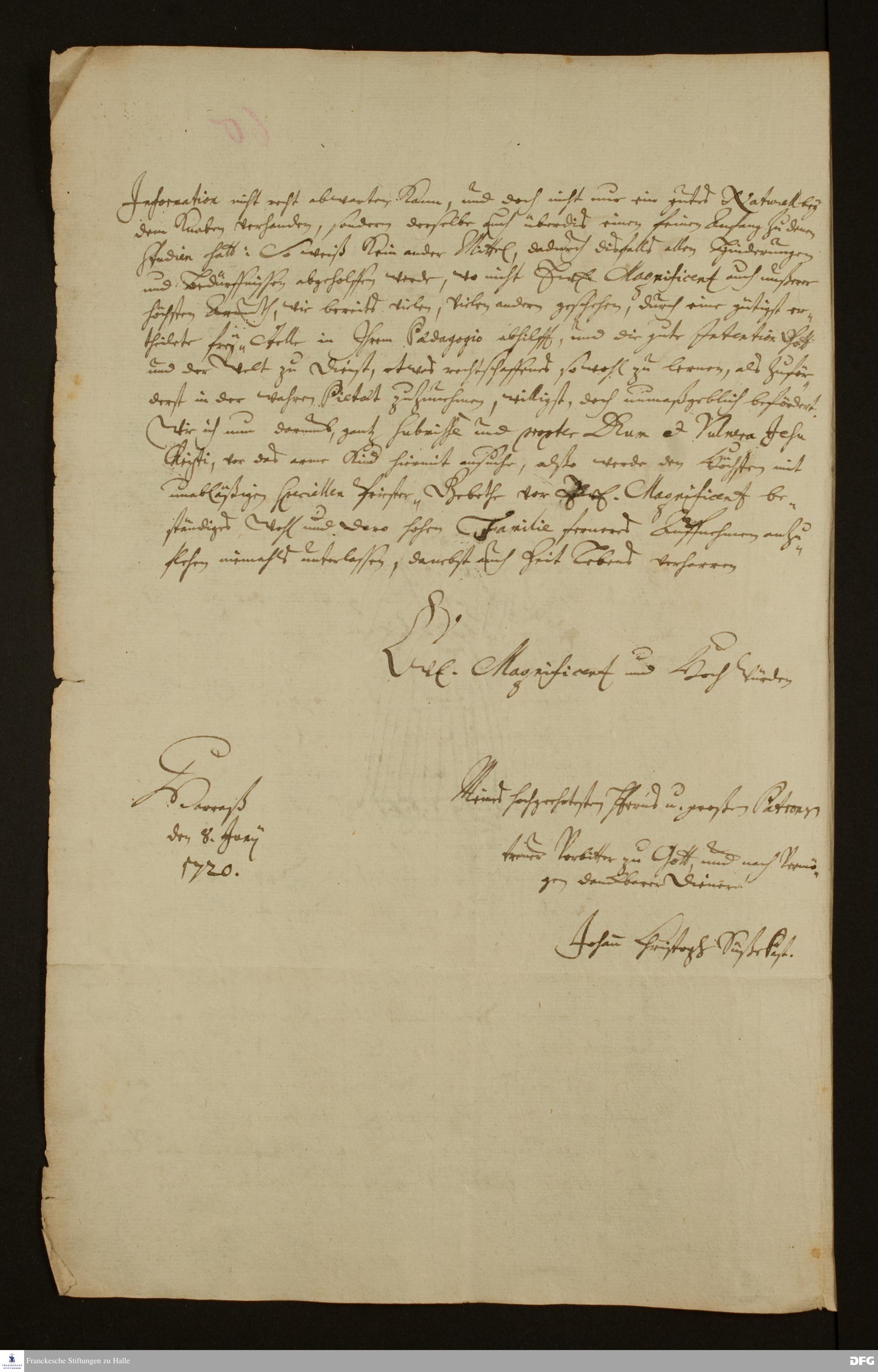 Brief von Johann Christoph Süsse an August Hermann Francke.