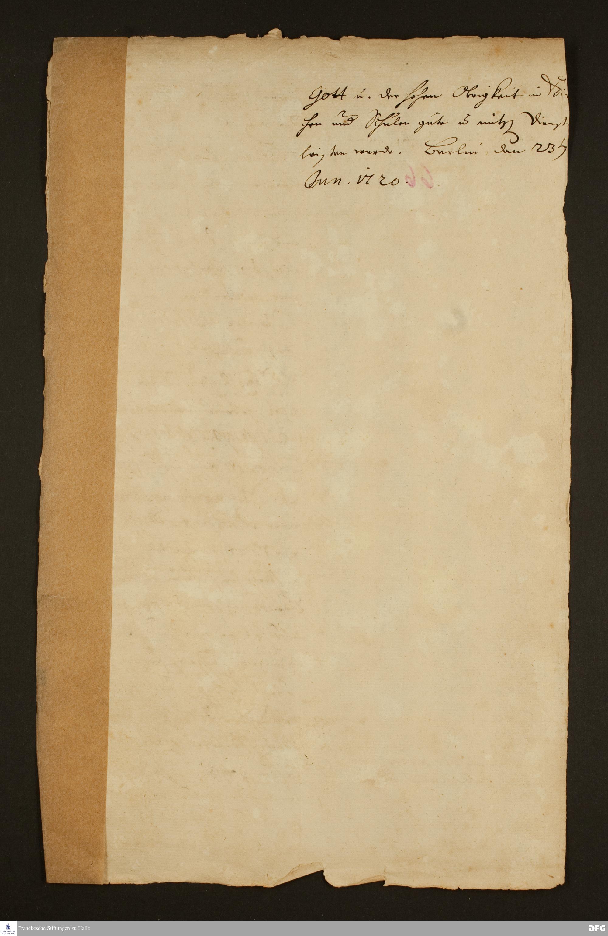 Testimonium von August Hermann Francke für Johann Immanuel Radatz.