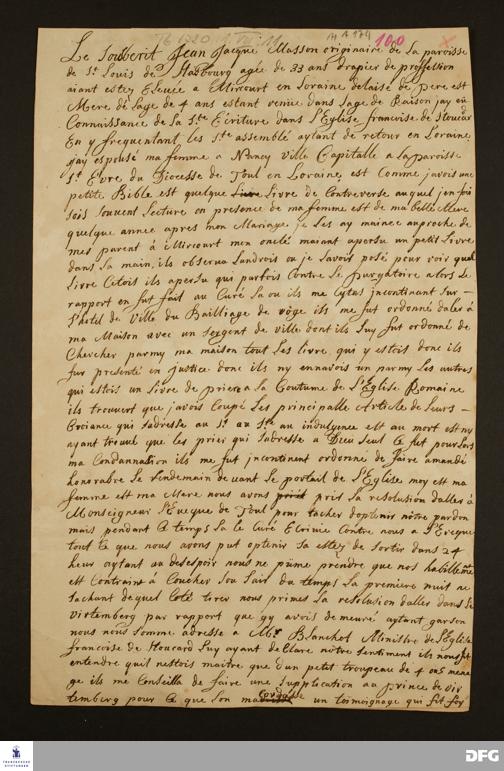 Bericht von Jean Jacques Masson über seine Auswanderung aus Frankreich.