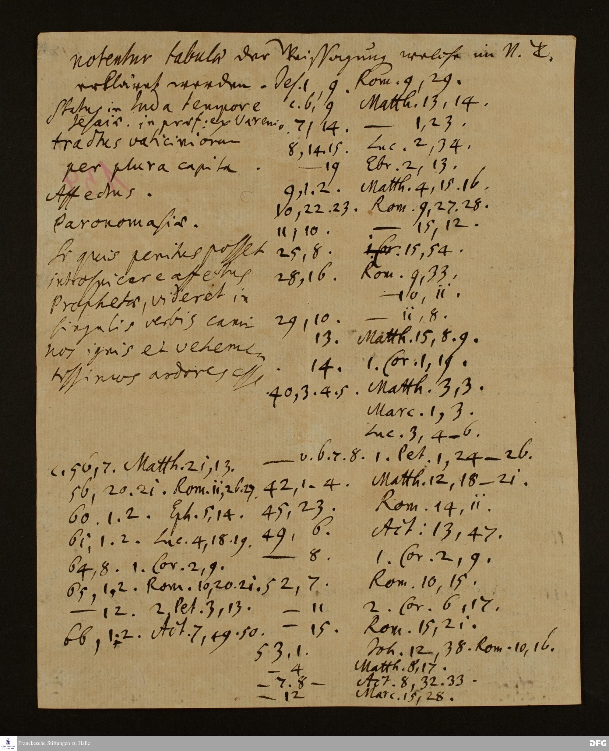 Disposition der Vorlesung von August Hermann Francke "Introduction ad lectionem Prophetarum".