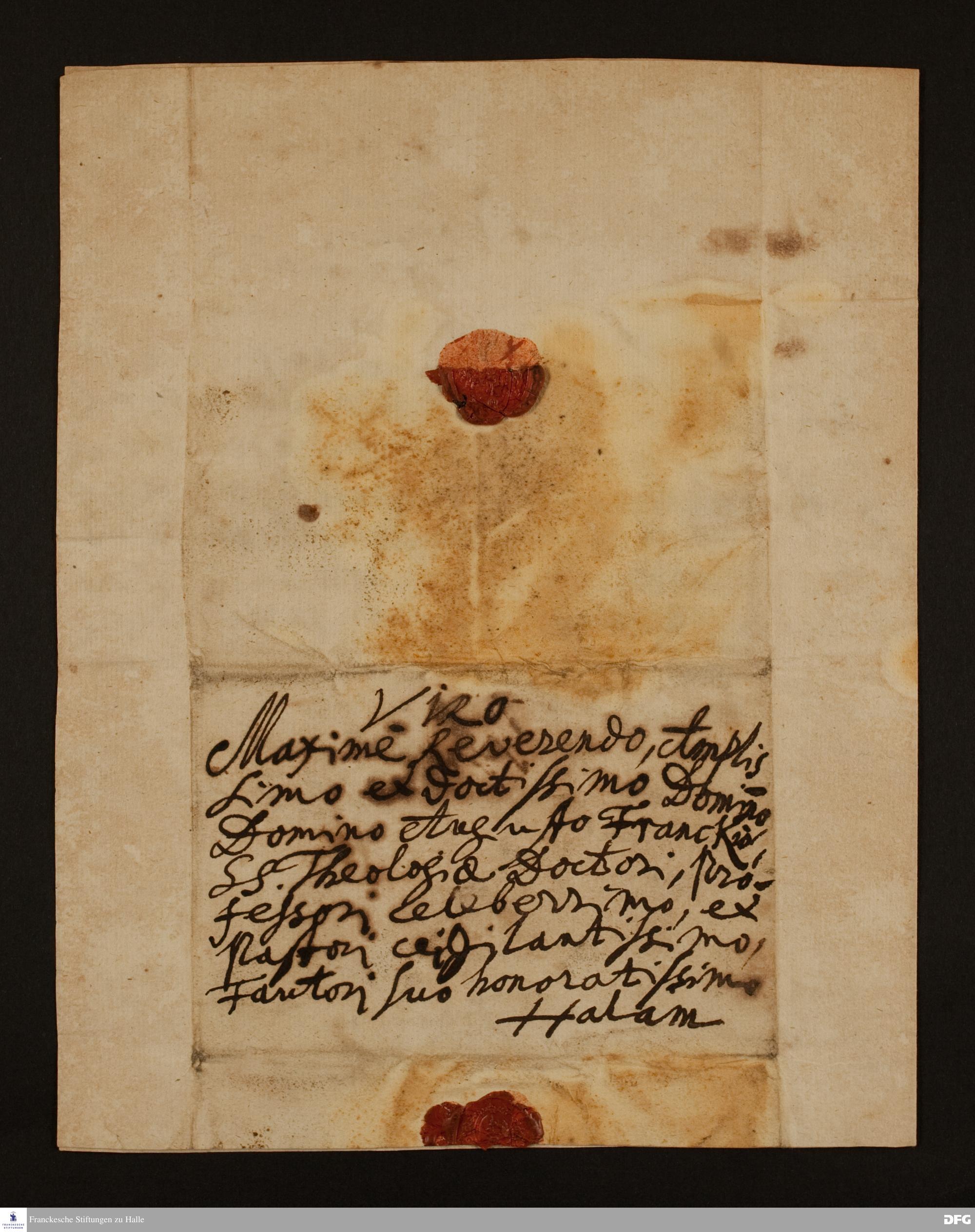 Brief von Johann Franz Scipio an August Hermann Francke.