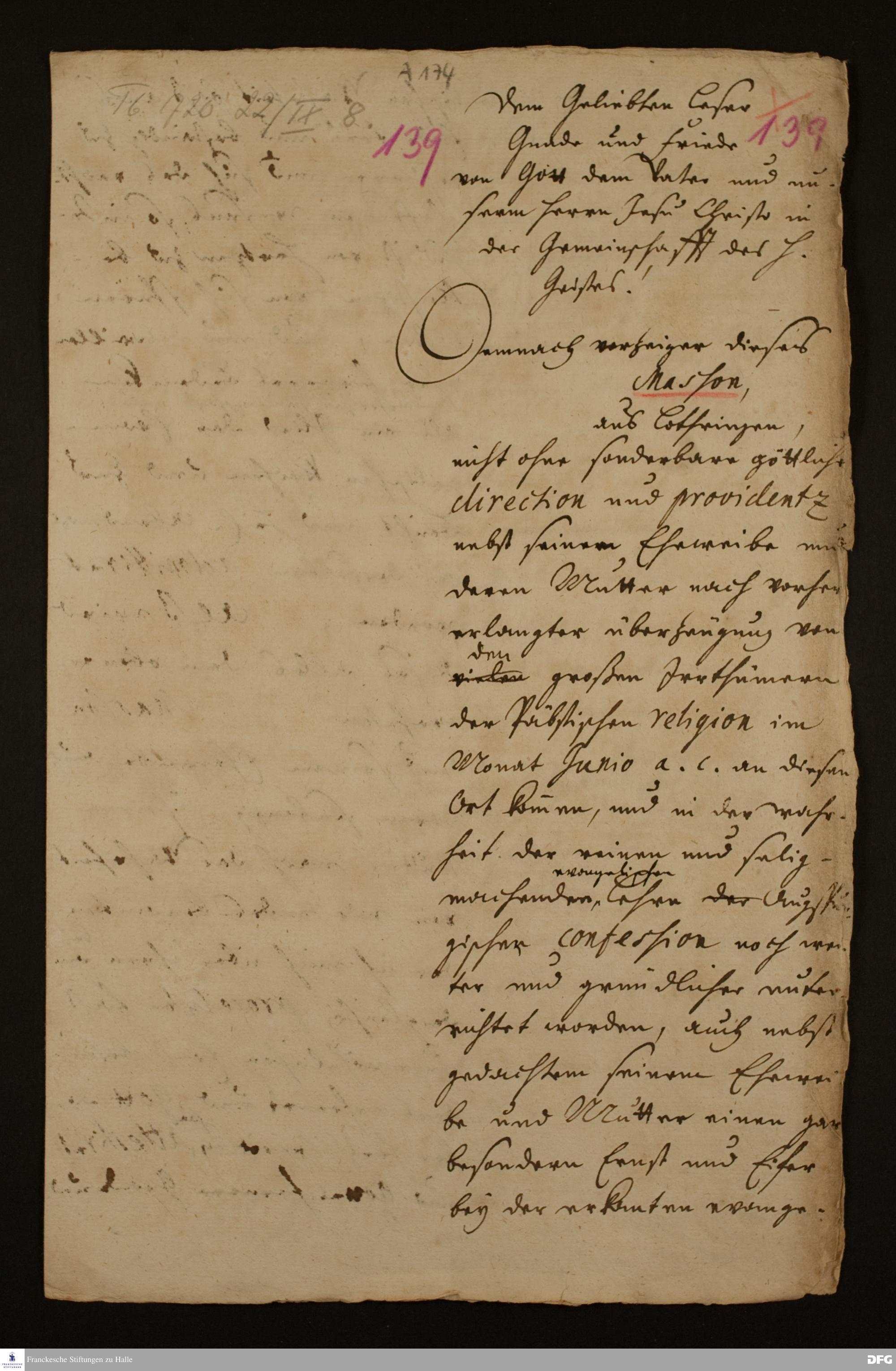 Attestat von August Hermann Francke für die Familie Masson.