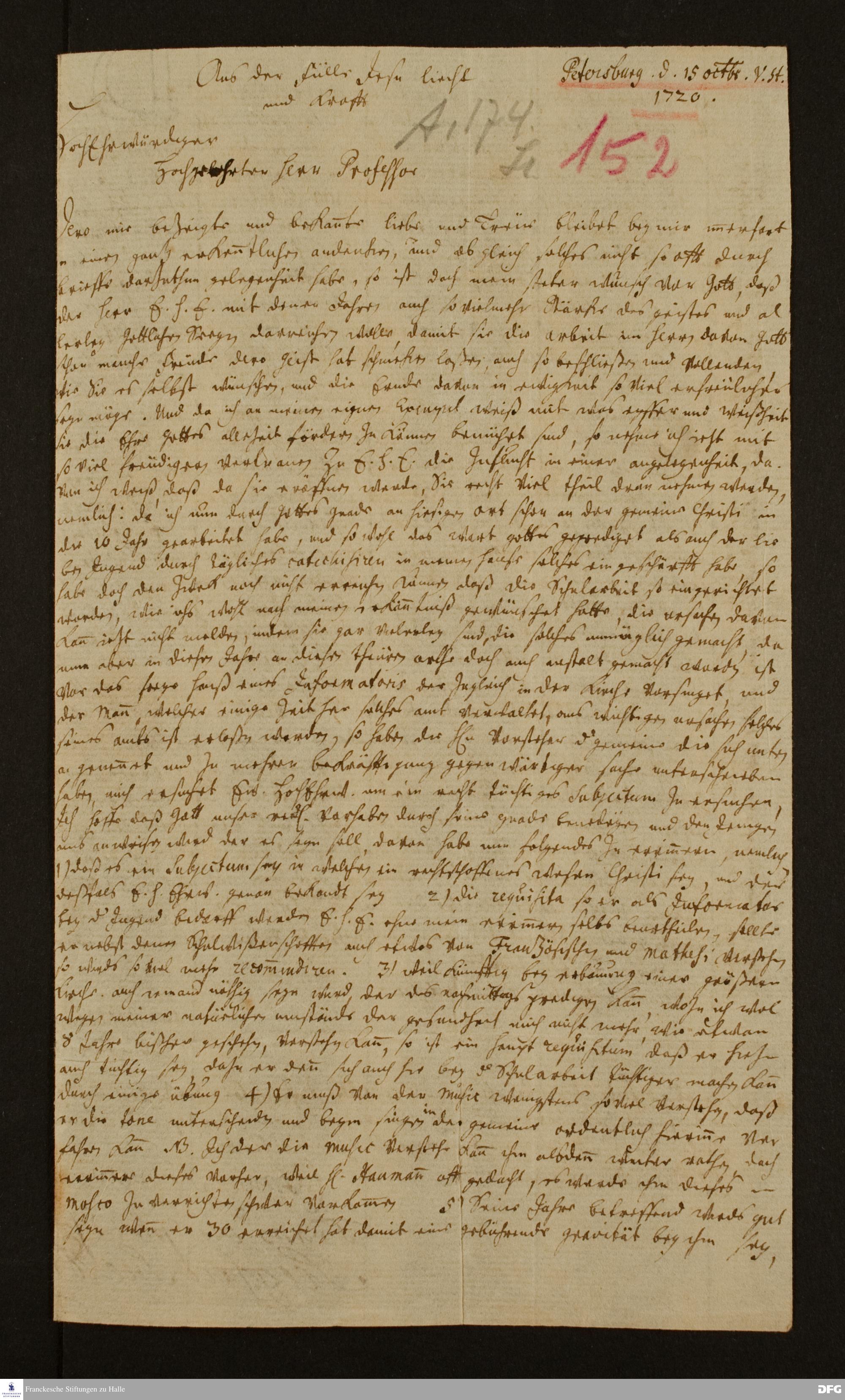 Brief von Heinrich Gottfried Nazzius an August Hermann Francke.