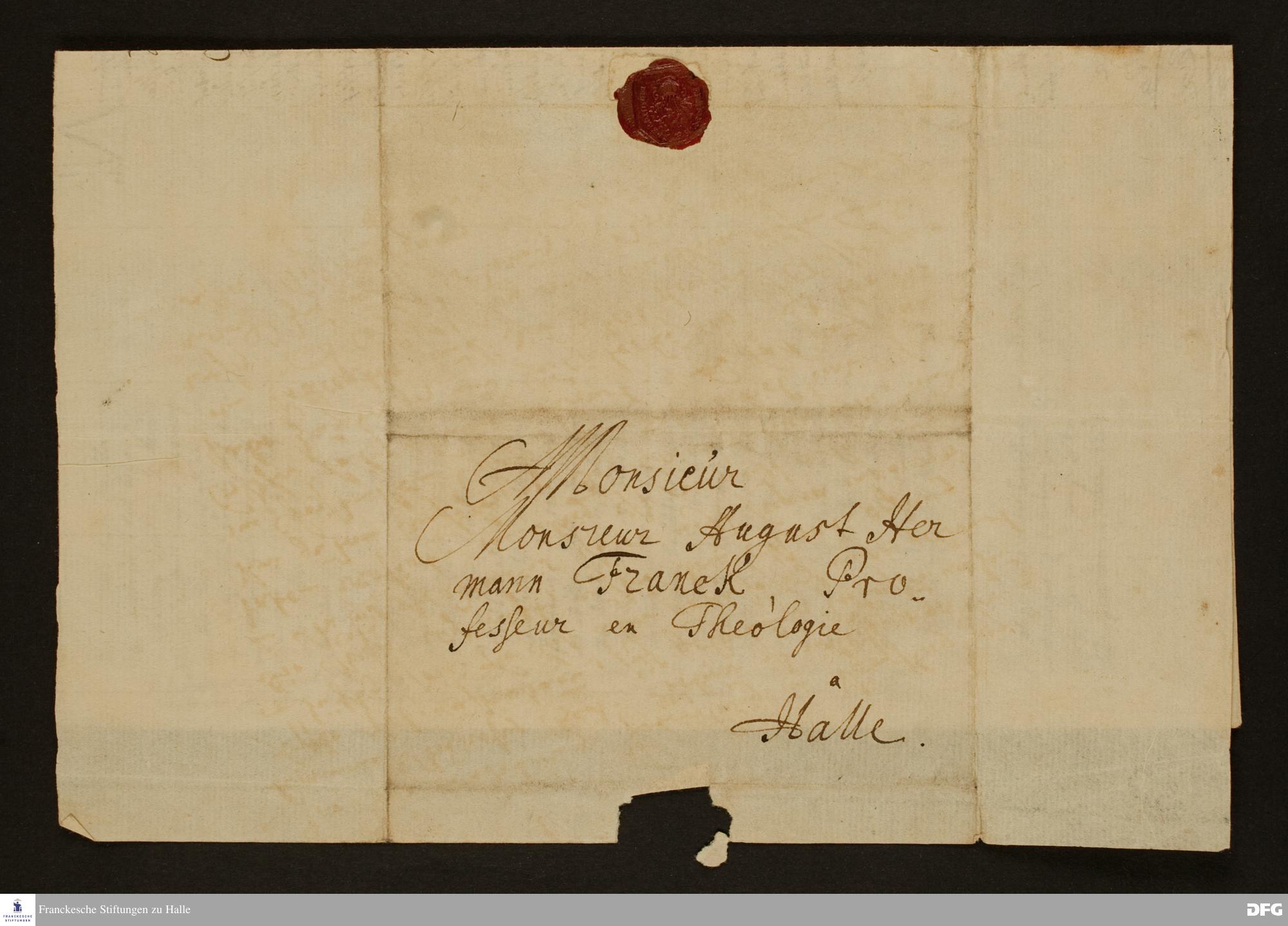 Brief von Heinrich Gottfried Nazzius an August Hermann Francke.