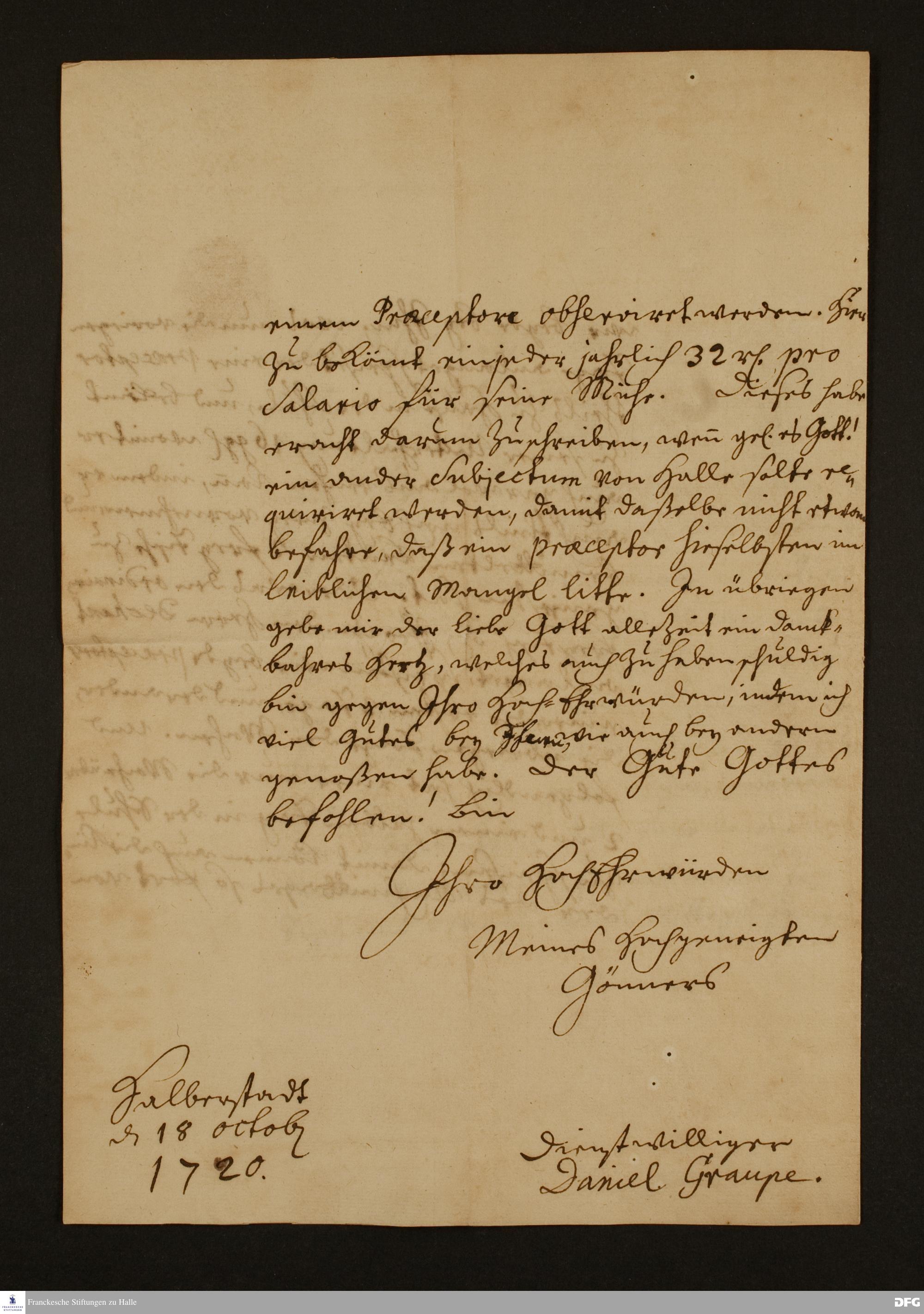 Brief von Daniel Graupe an August Hermann Francke.