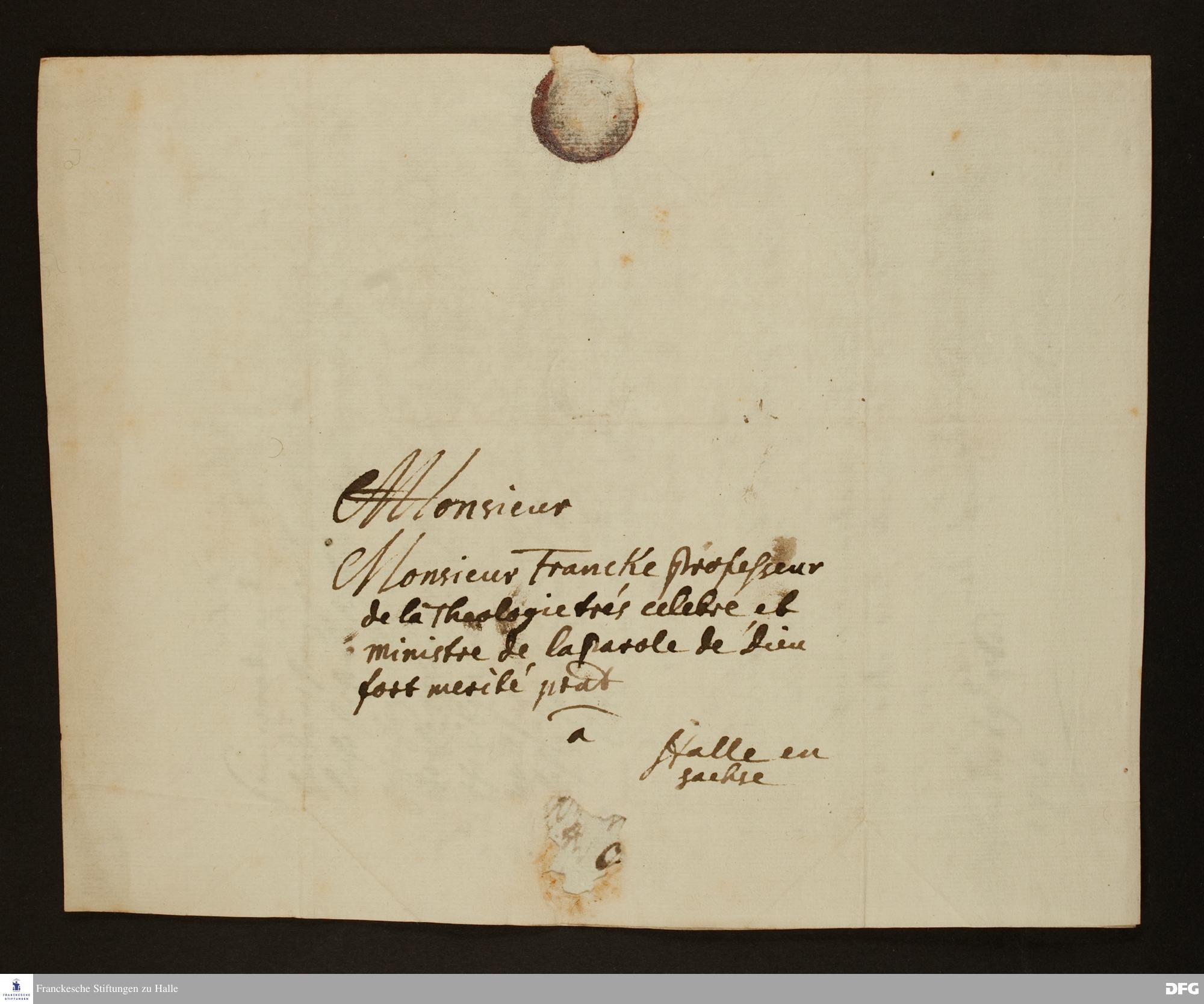 Brief von Conrad Franz v. Steinhausen an August Hermann Francke.