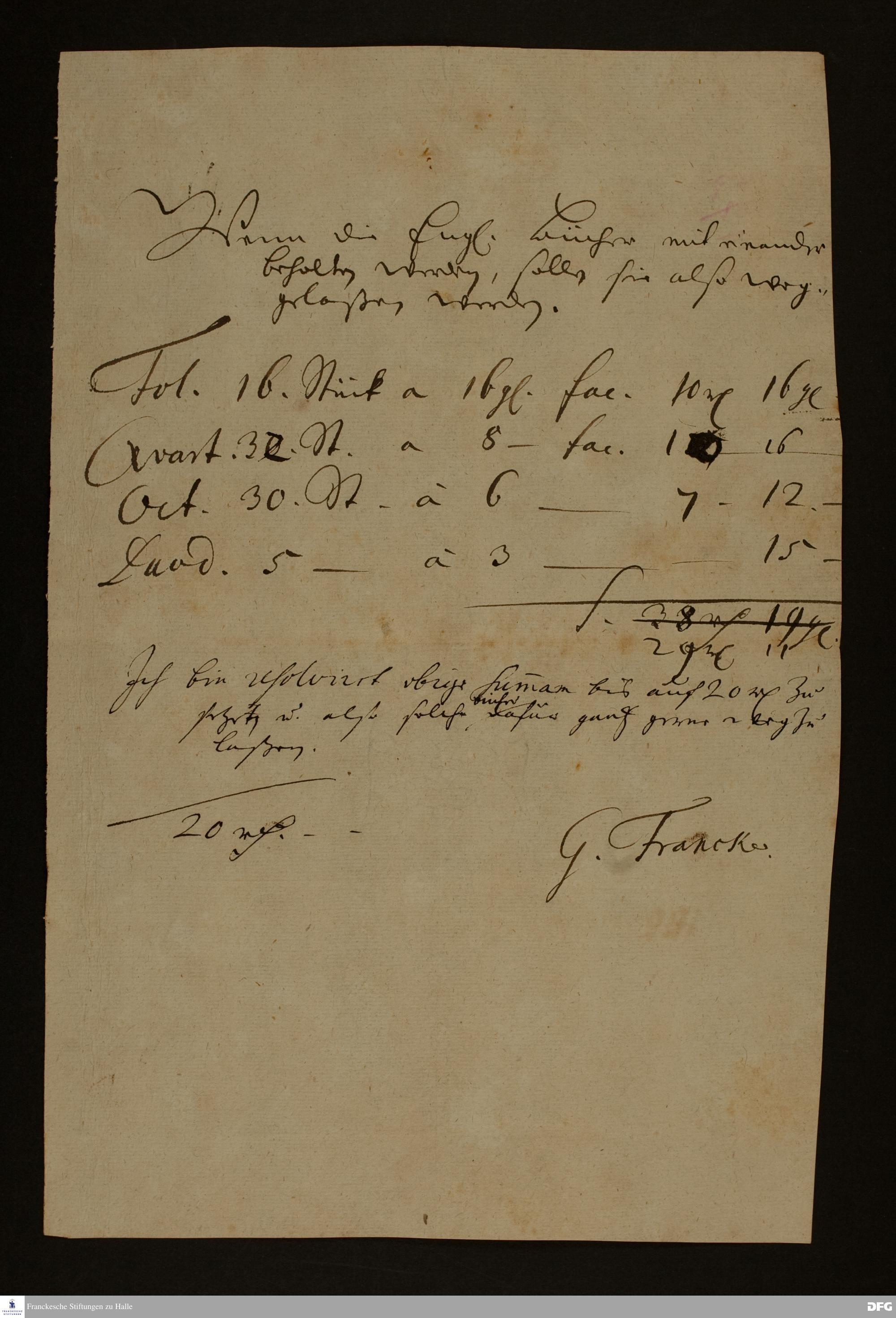 Angebot von Gottfried Francke an August Hermann Francke für englische Bücher.