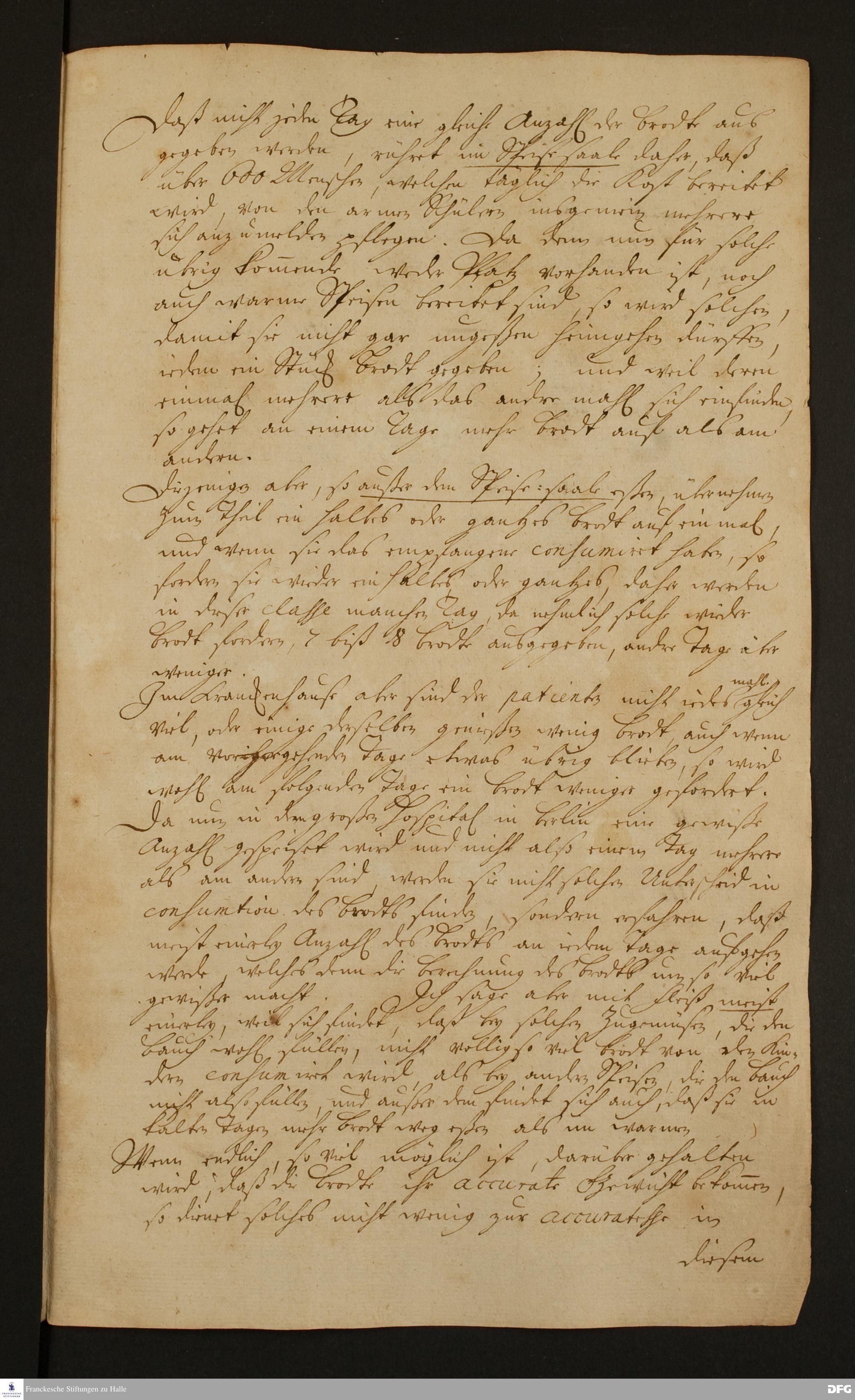 Aufstellung und Erläuterungen von Georg Heinrich Neubauer über den wöchentlichen Brotverbrauch in den Glauchaschen Anstalten.