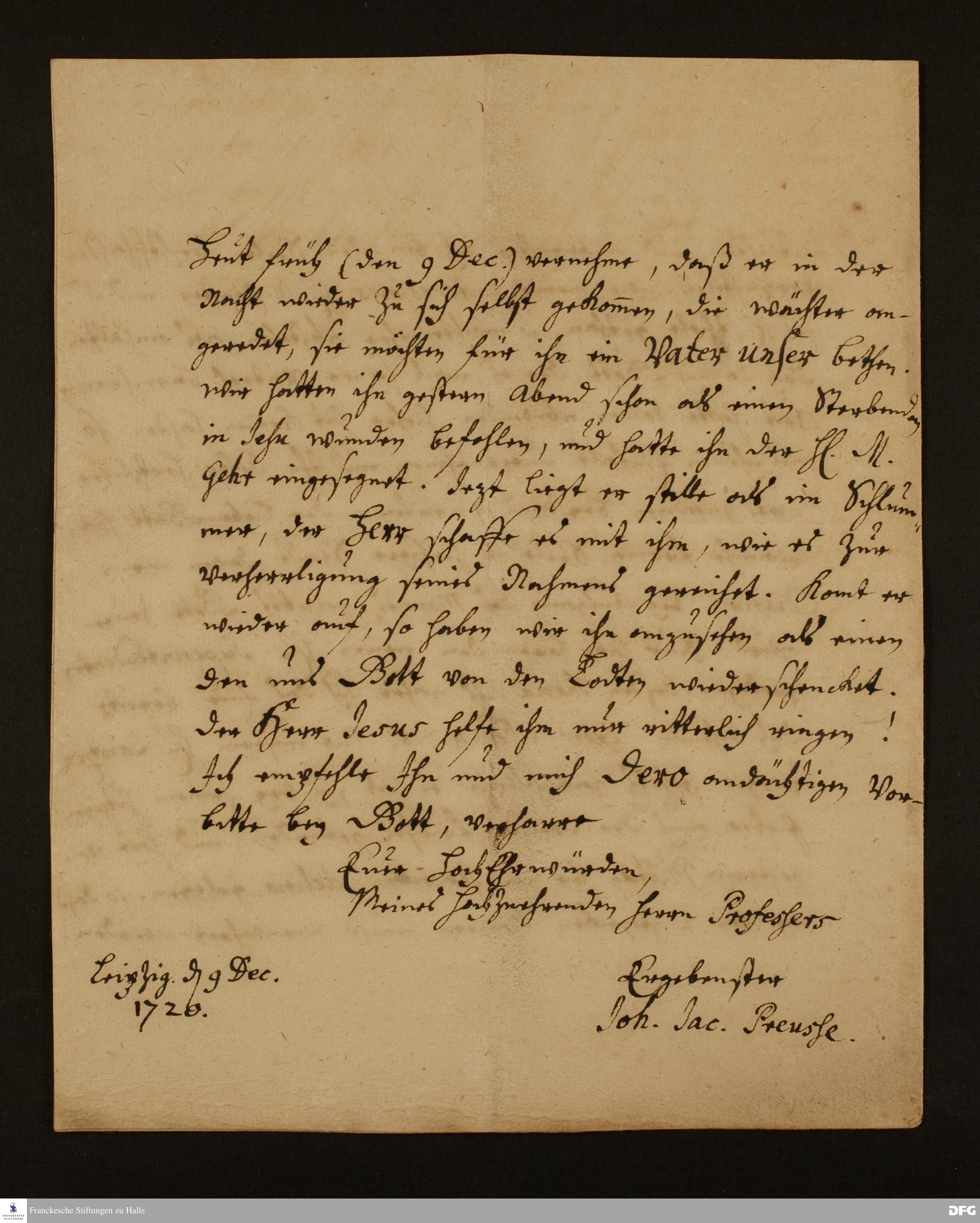 Brief von Johann Jacob Preusse an August Hermann Francke.