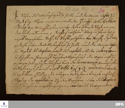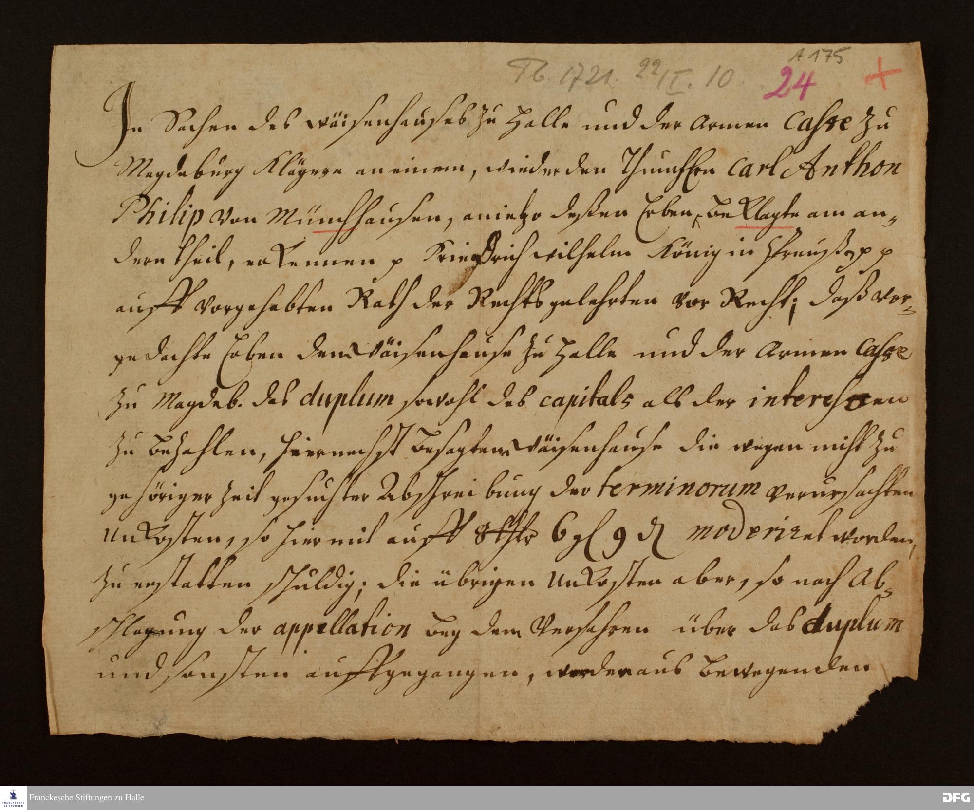 Urteil im Prozess der Glauchaschen Anstalten und der Armenkasse zu Halle gegen die Erben Carl Anton Philipps v. Münchhausen, übersendet von Christoph Andreas Schubart.