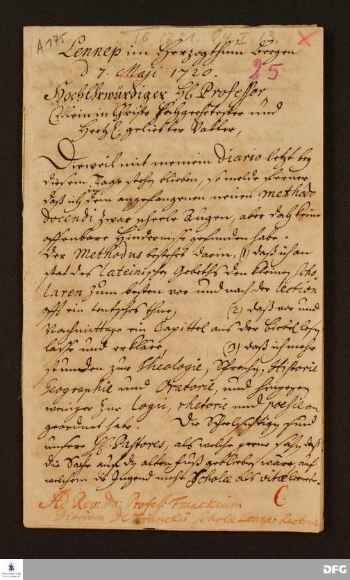 Tagebuch von Daniel Christian Francke an August Hermann Francke.