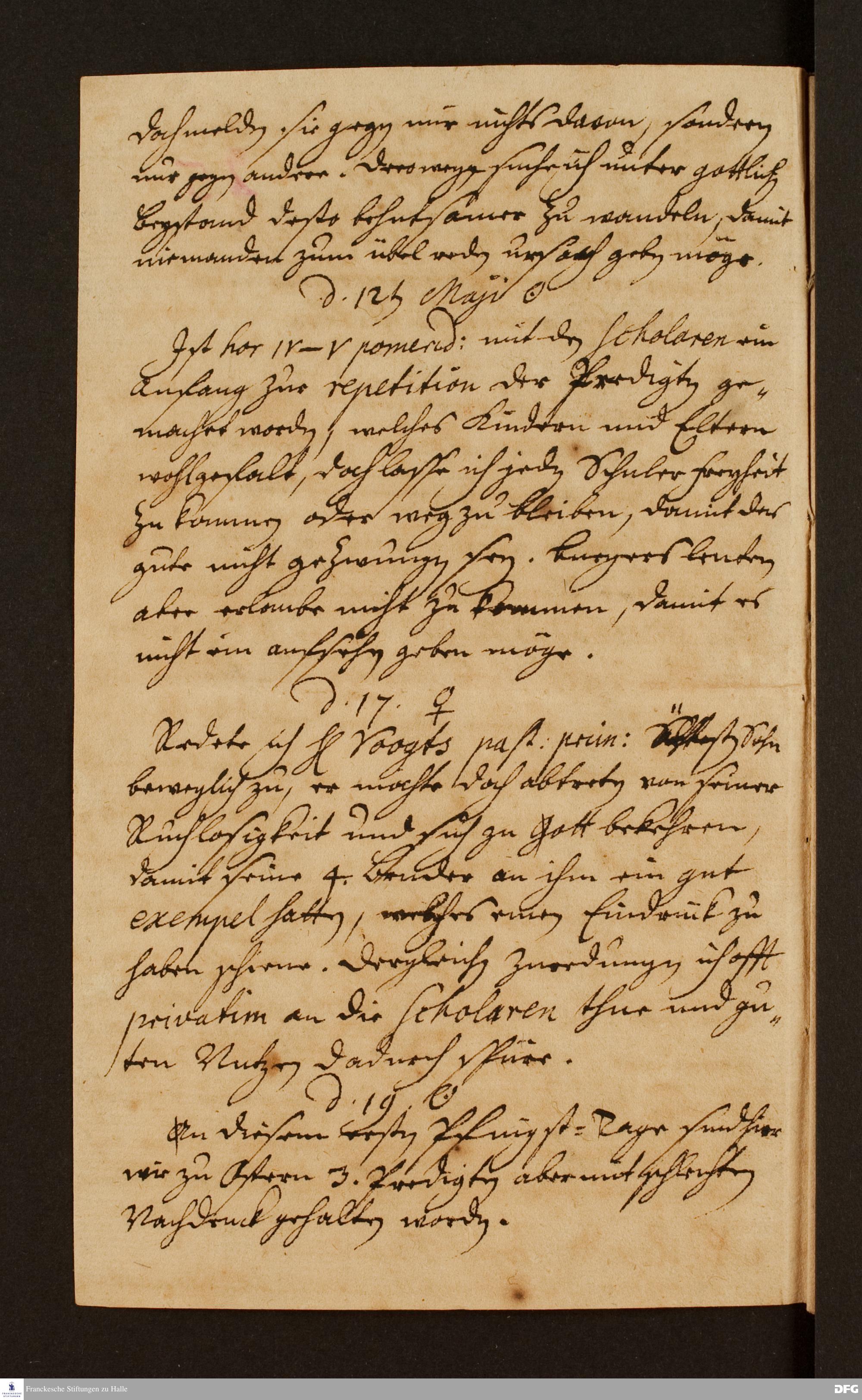 Tagebuch von Daniel Christian Francke an August Hermann Francke.