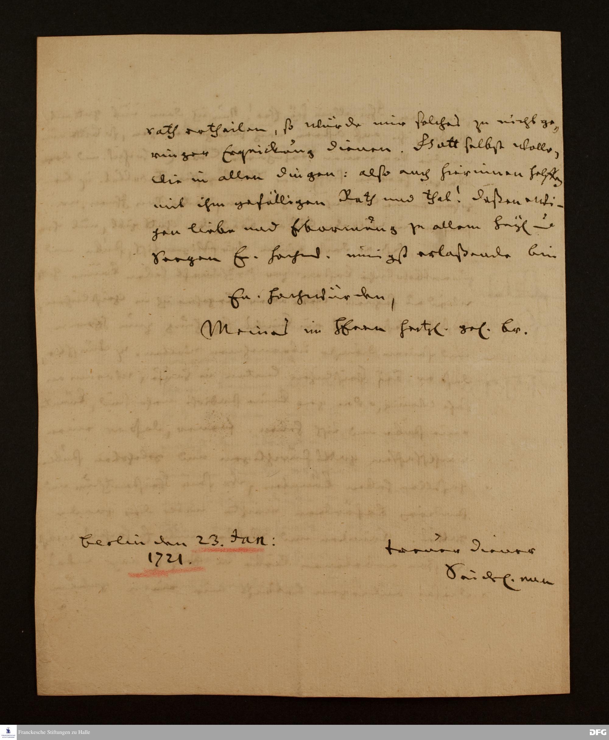 Brief von Christoph Matthäus Seidel an August Hermann Francke,