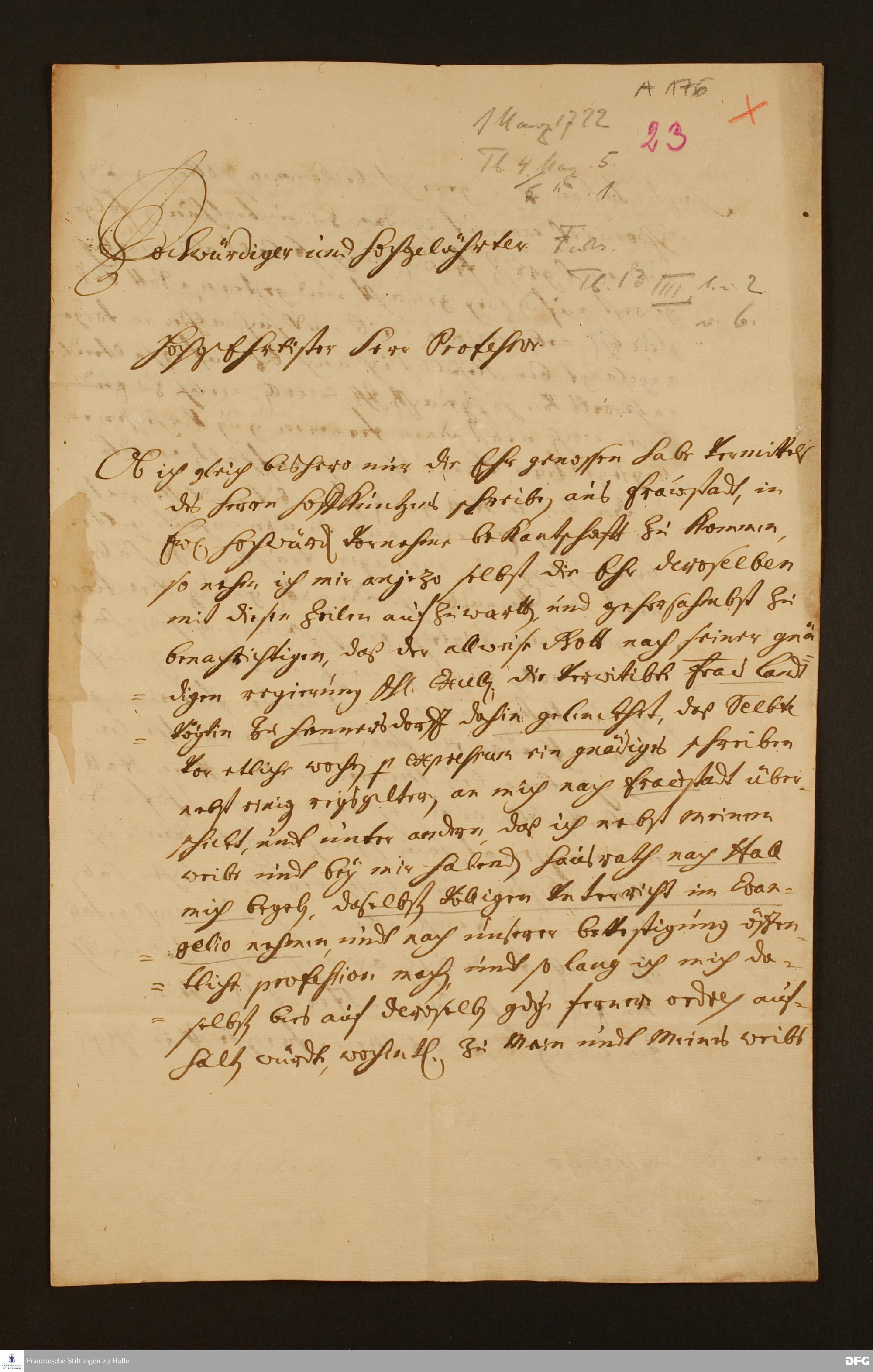 Brief von Johann Caspar Raupes an August Hermann Francke.
