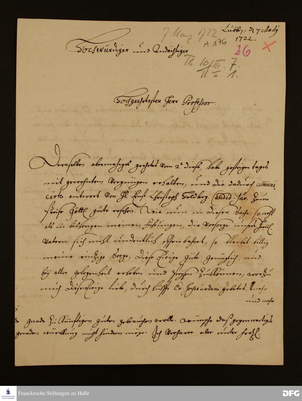 Brief von Georg Christoph von Burgsdorff an August Hermann Francke.