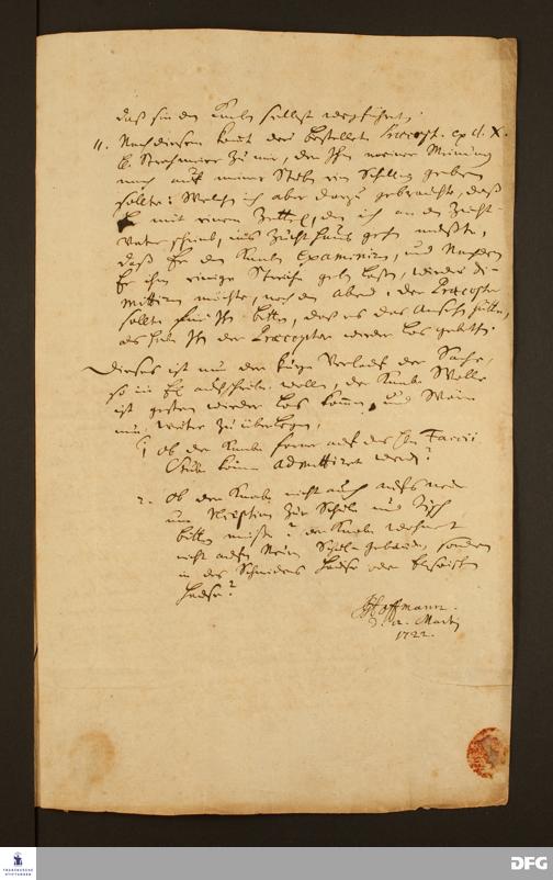 Bericht von Johann Georg Hoffmann an Johann Daniel Herrnschmidt.
