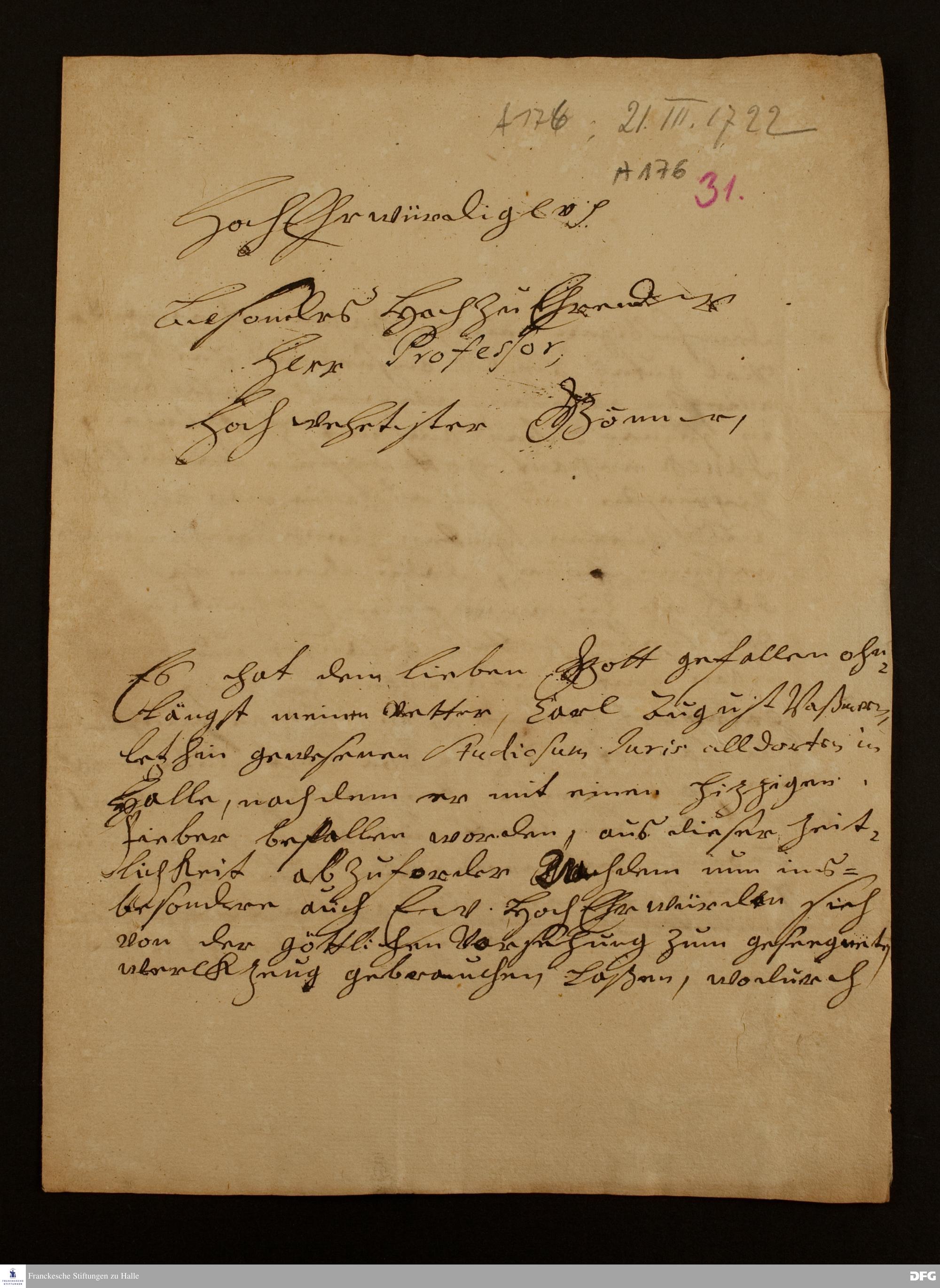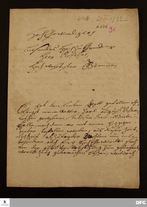 Brief von Maria Elisabeth Vassmer an August Hermann Francke.