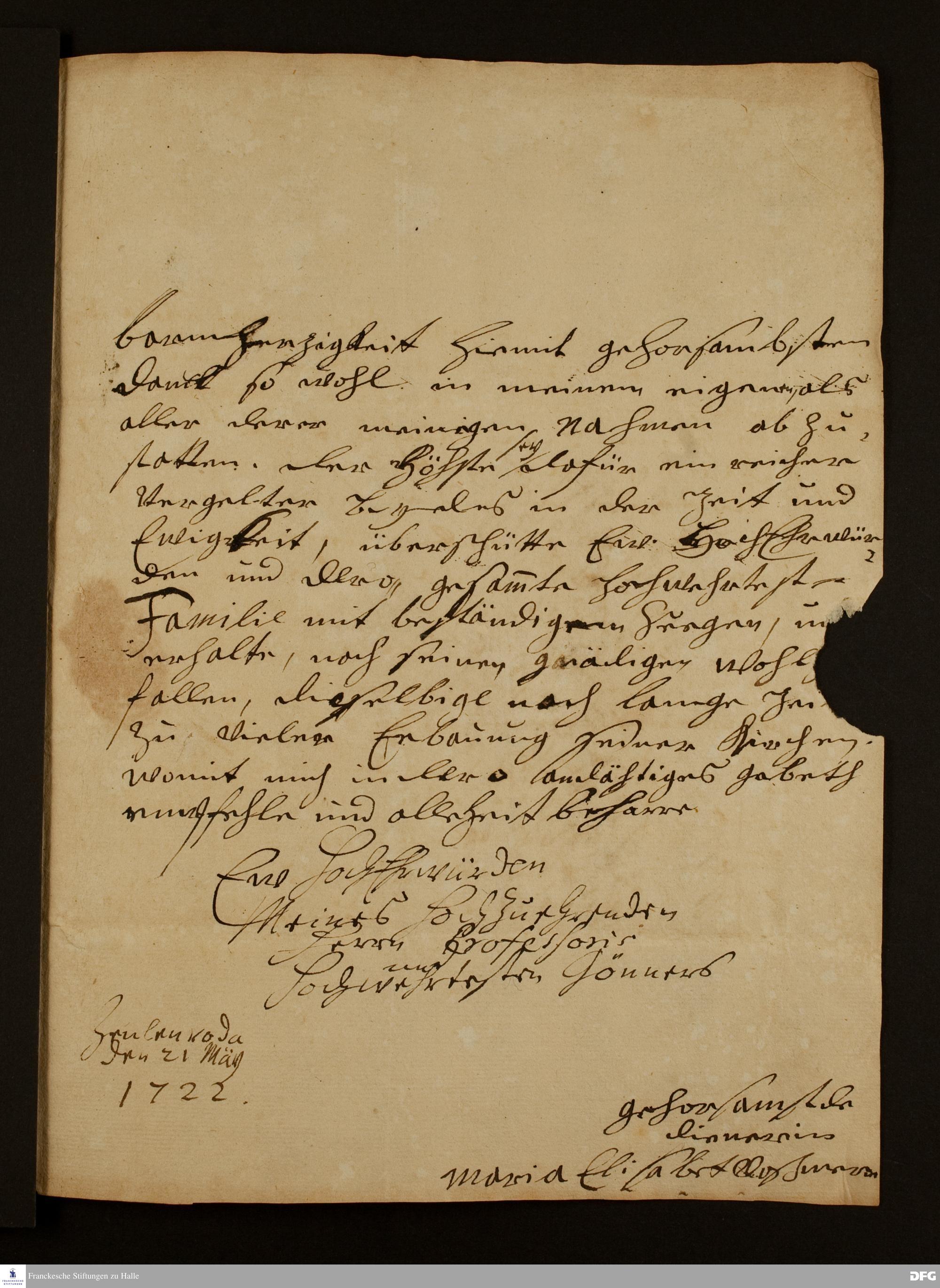 Brief von Maria Elisabeth Vassmer an August Hermann Francke.