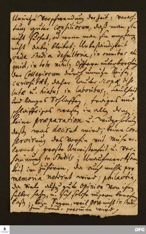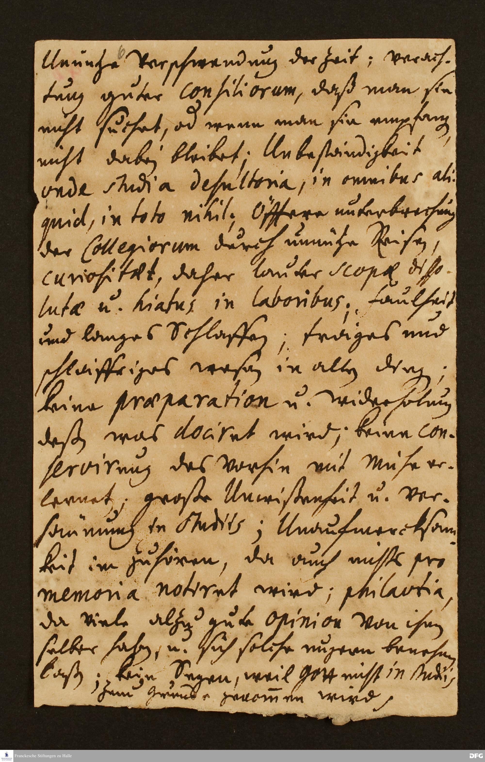 Disposition des Collegium paraeneticum methodologicum von August Hermann Francke am 14.04.1722.