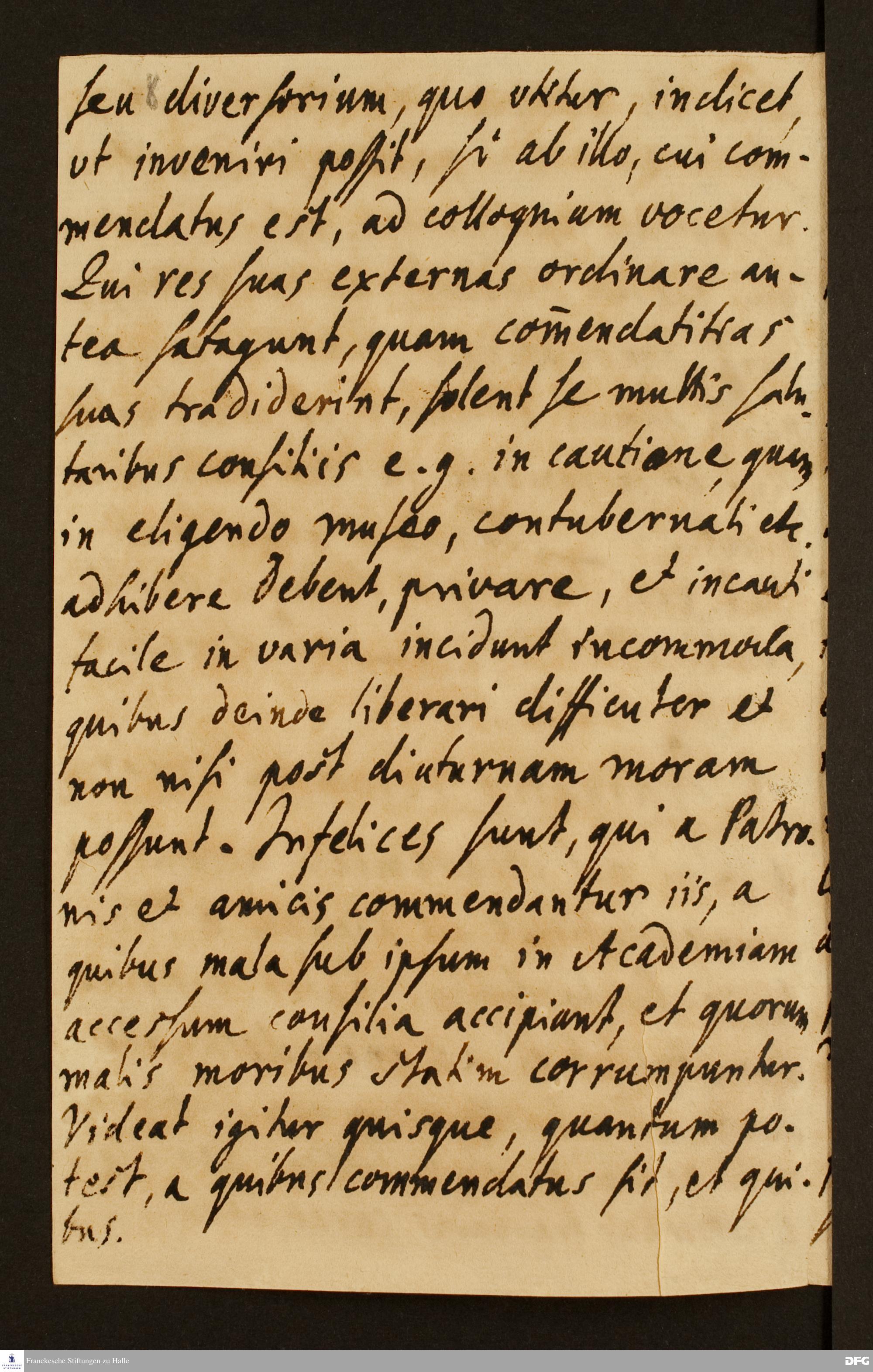 Disposition des Collegium paraeneticum methodologicum von August Hermann Francke am 14.04.1722.