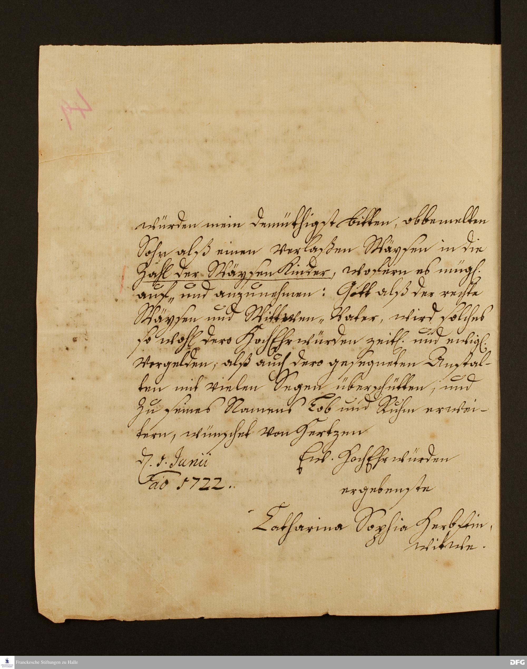 Brief von Catharina Sophie Herbst an August Hermann Francke.
