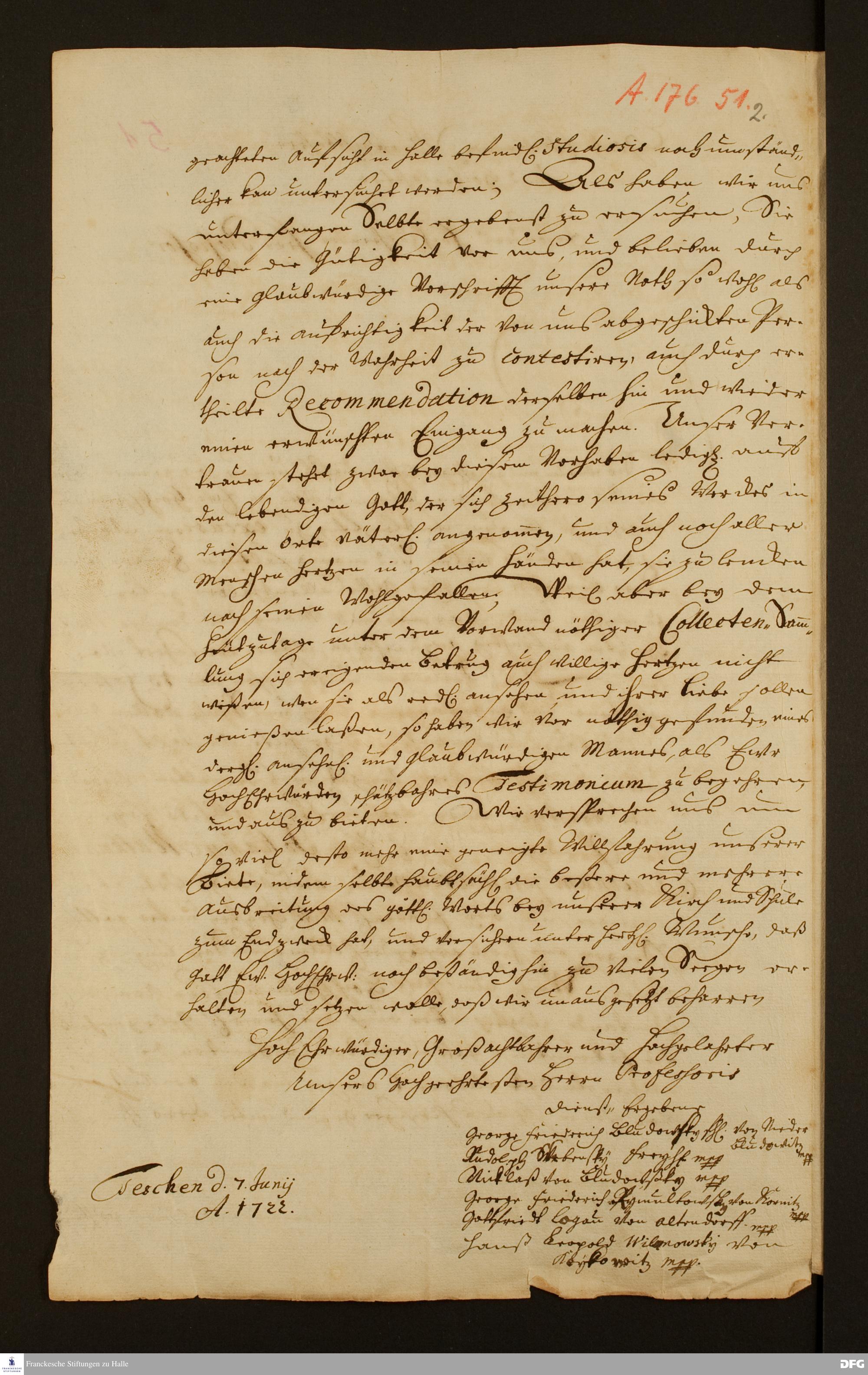 Brief der Kirchenvorsteher der lutherischen Gemeinde von Teschen an August Hermann Francke.