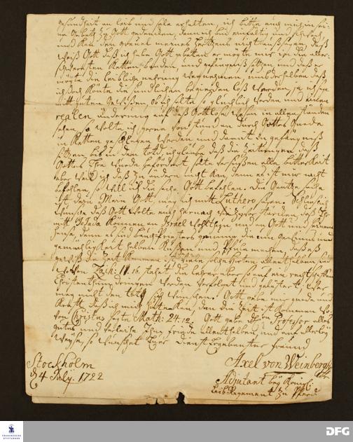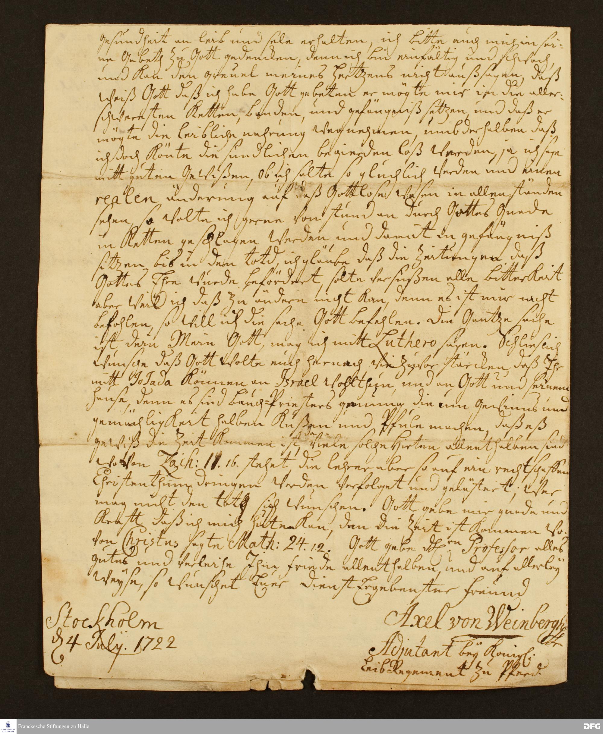 Brief von Axel v. Weinberg an August Hermann Francke.