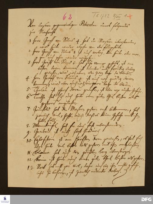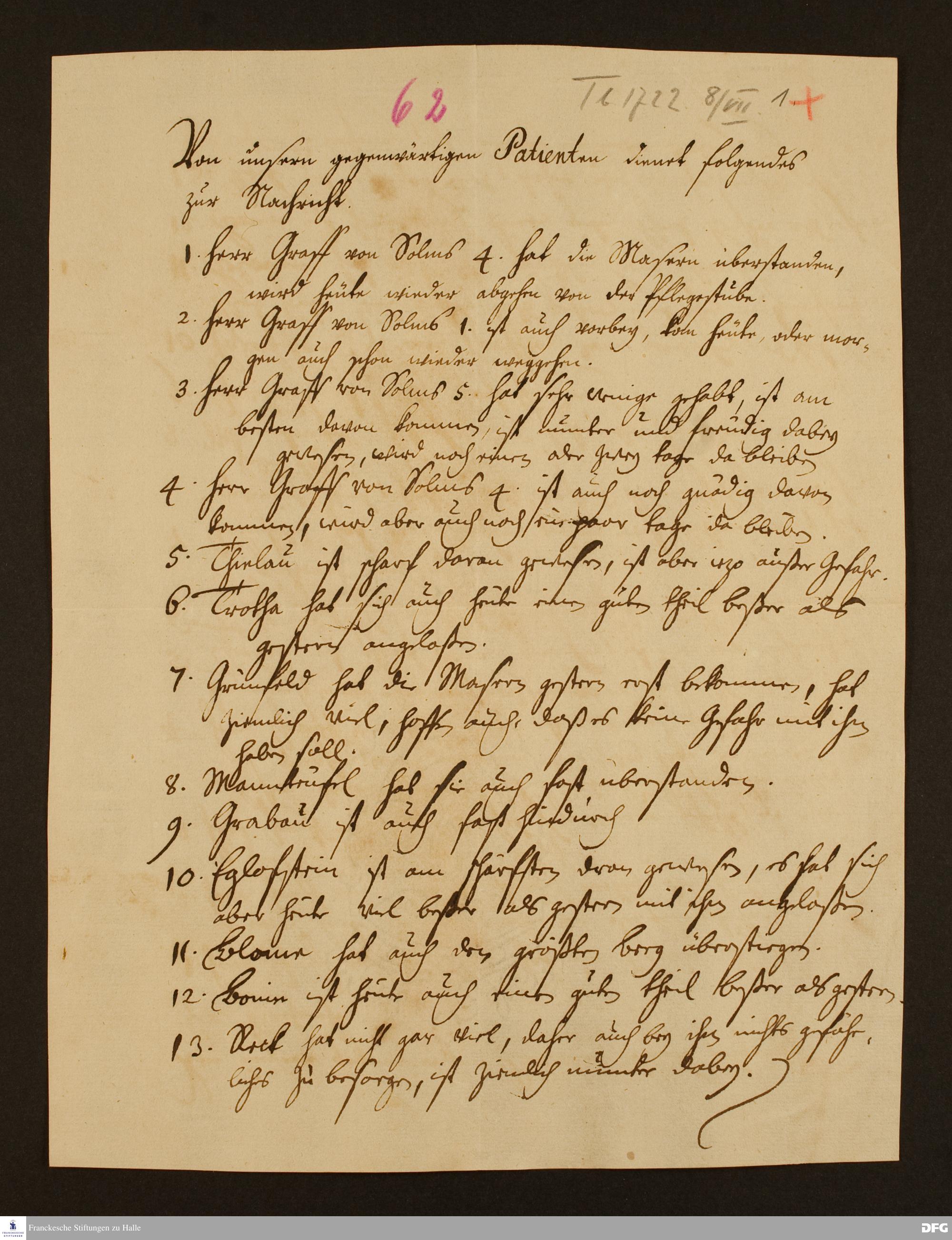 Bericht [von Johann Juncker] über den Gesundheitszustand einiger an Masern erkrankter Schüler des Pädagogiums.