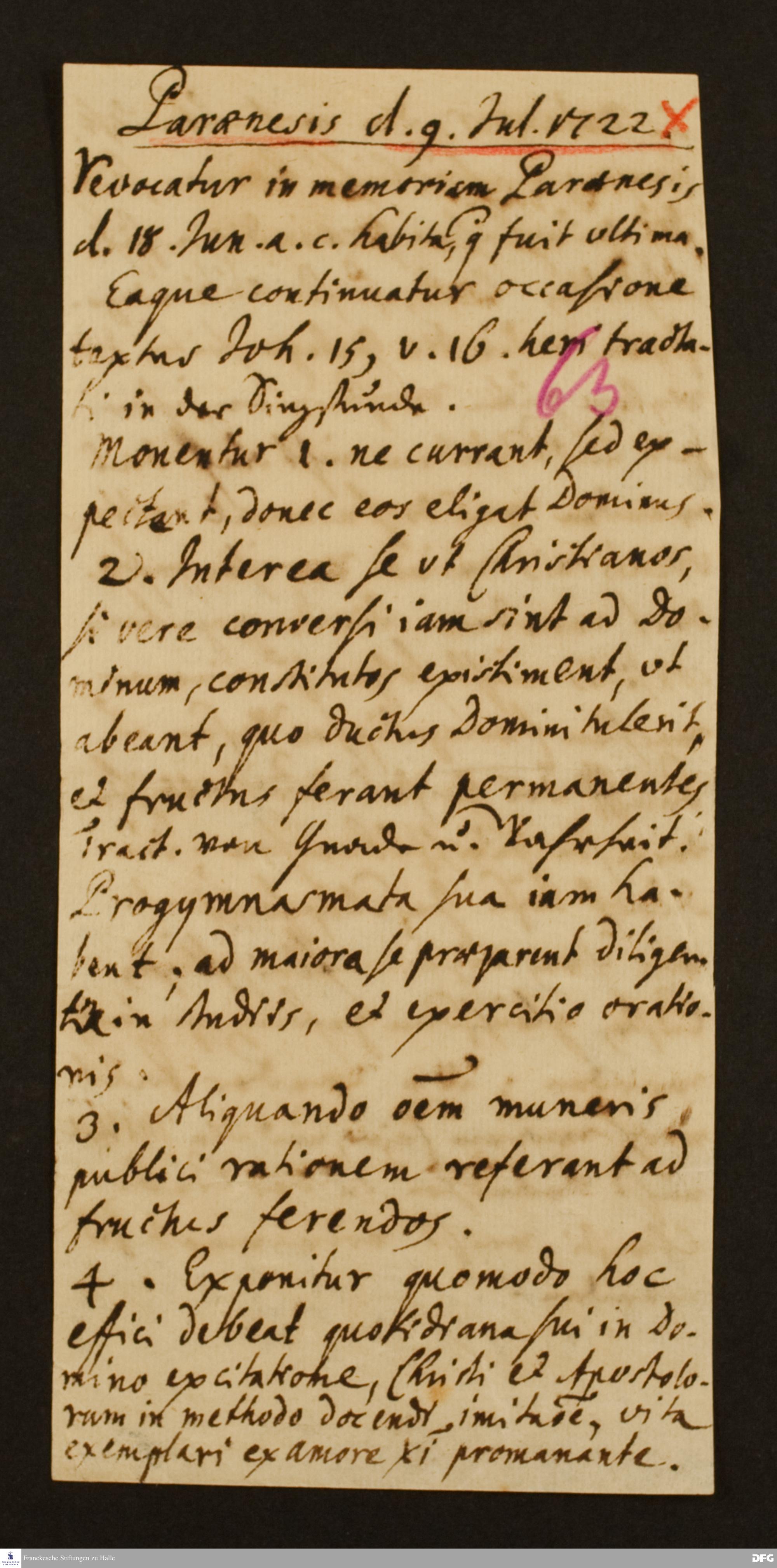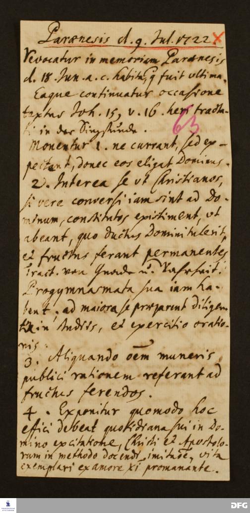 Disposition der paränetischen Vorlesung von August Hermann Francke am 09.07.1722.
