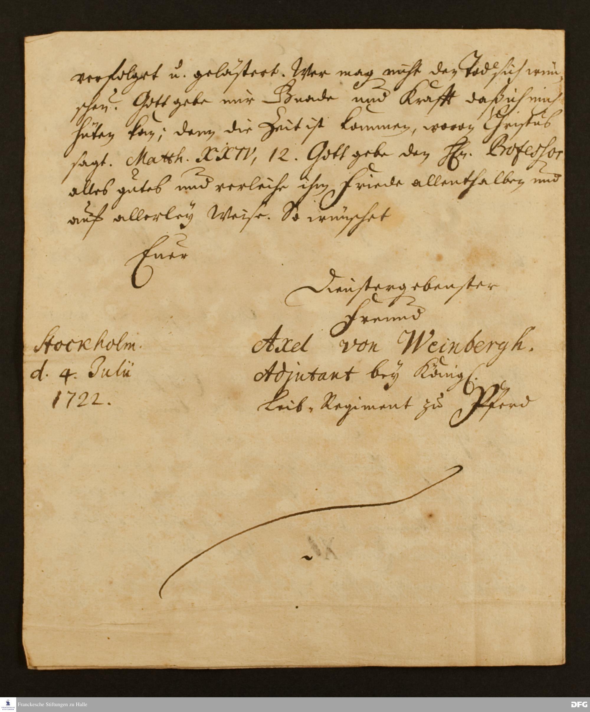 Brief von Axel v. Weinberg an August Hermann Francke.