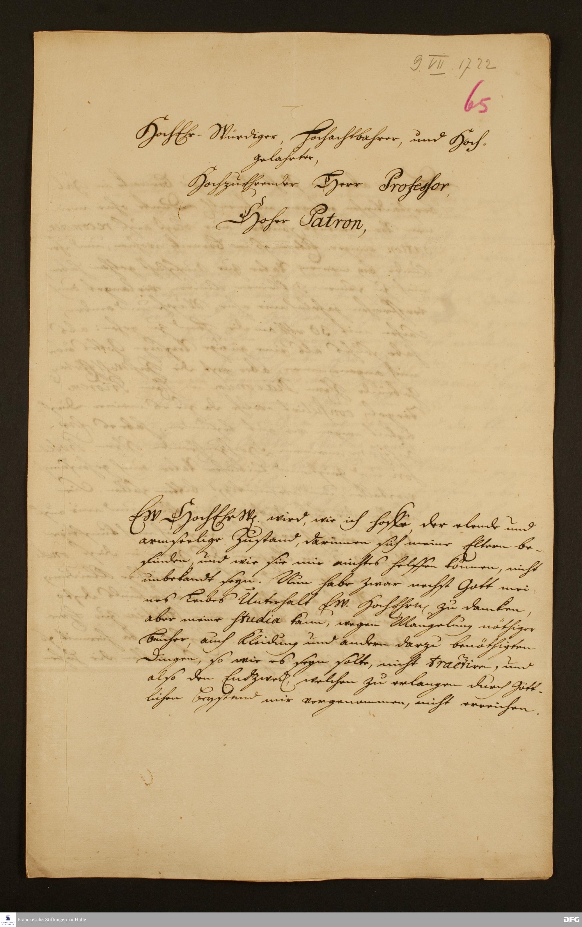 Brief von Johann Martin Rohrberg an August Hermann Francke.