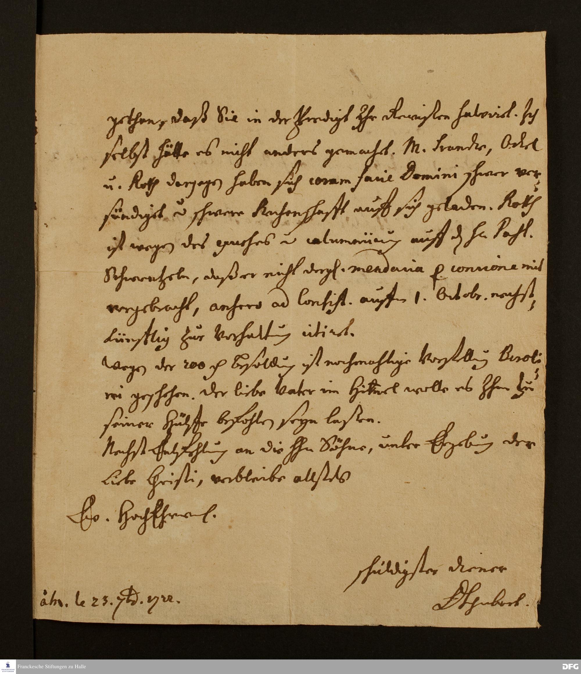 Brief von Andreas Christoph Schubart an August Hermann Francke.
