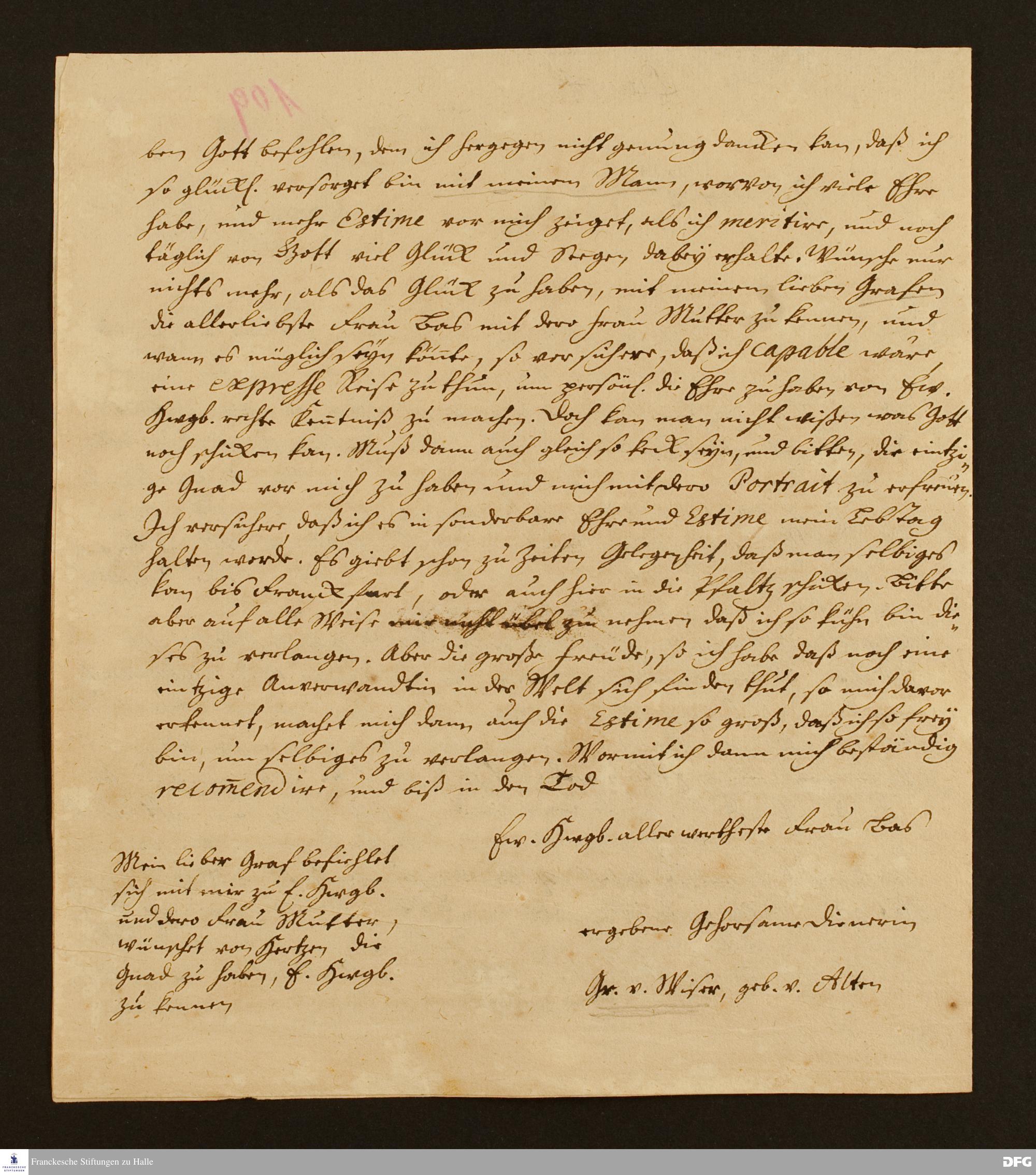 Brief von [Anne Lucie] v. Wiser an Ilse Anna v. Kameke.