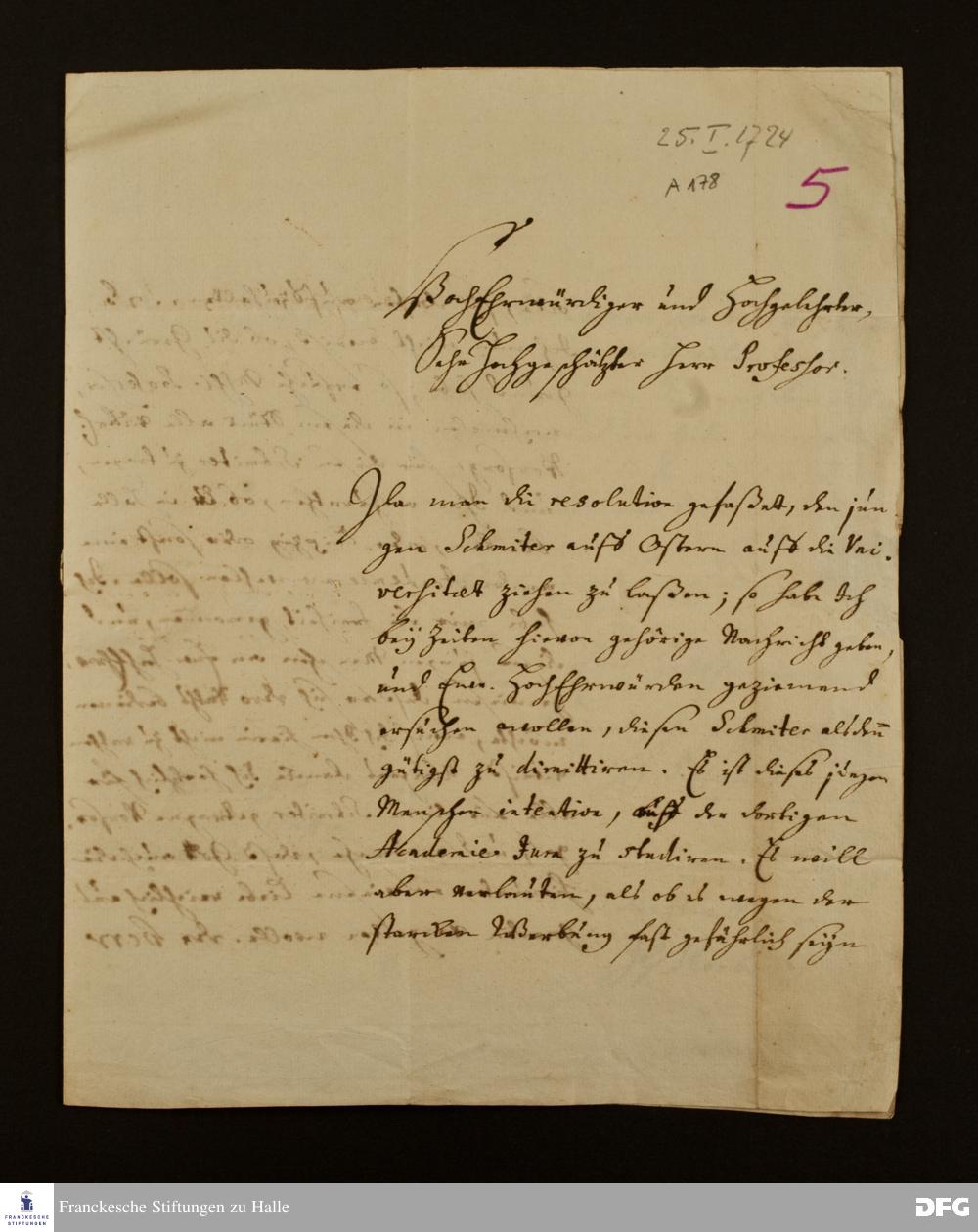 Brief von Johann Georg Thorborg an August Hermann Francke.