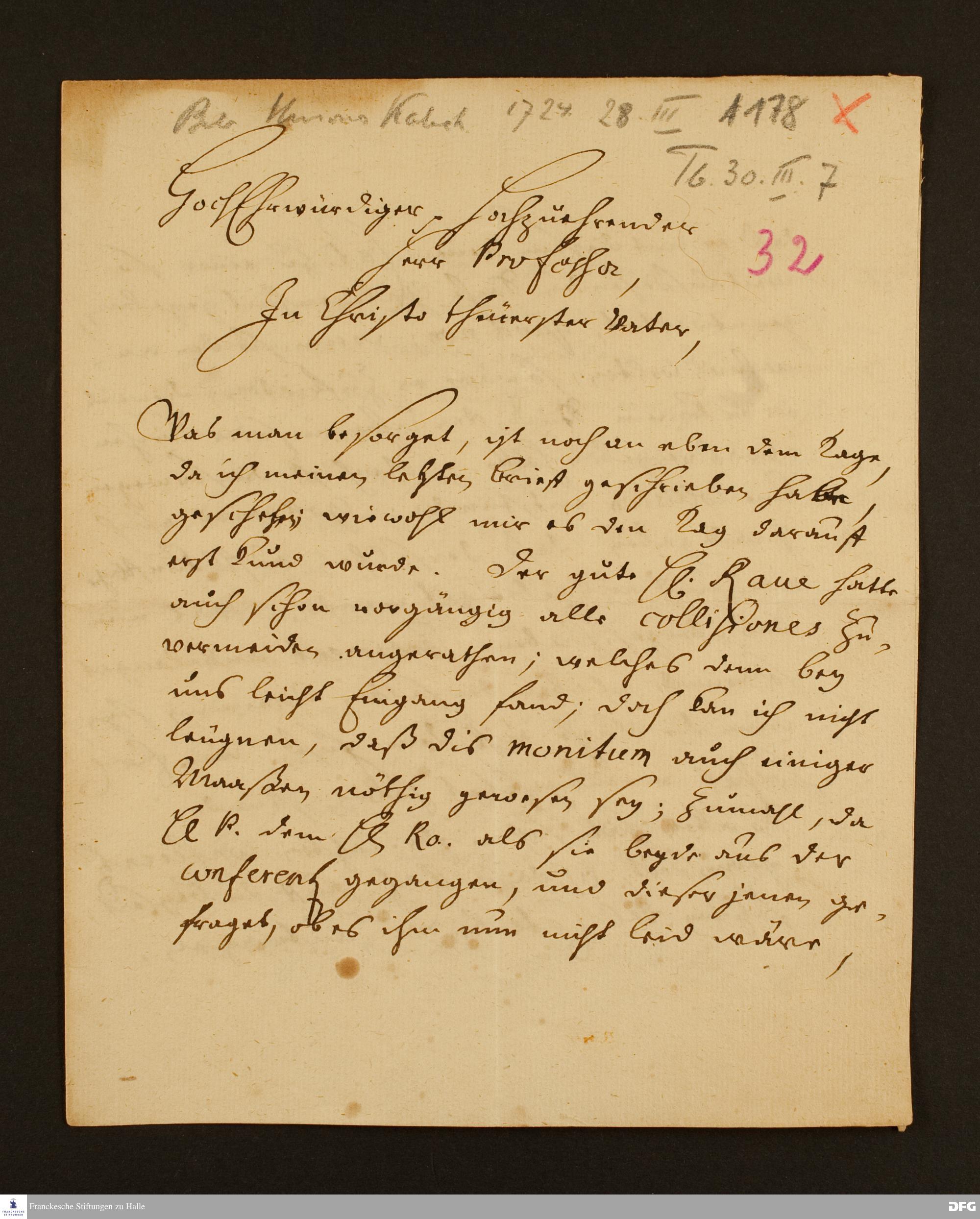 Brief von Johann Gustav Reinbeck an August Hermann Francke.